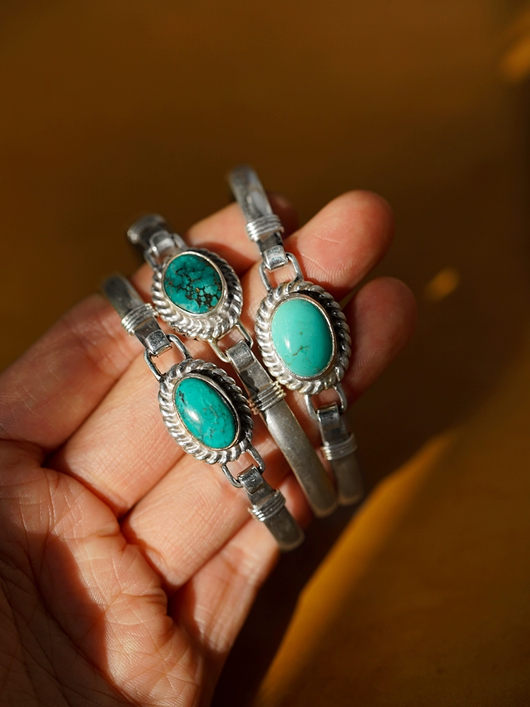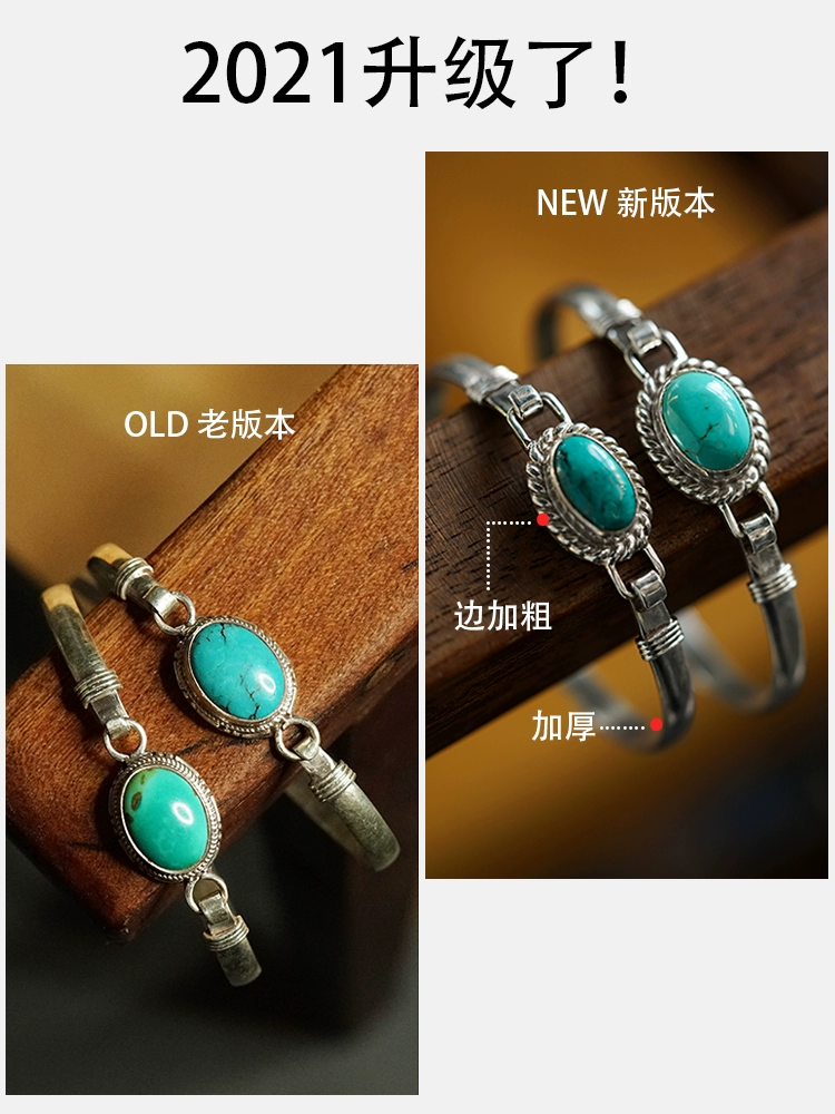 | nameOriginal | Shanhai, Weishi 925 sterling silver natural turquoise bracelet retro wrist Nepalese handmade men and women |