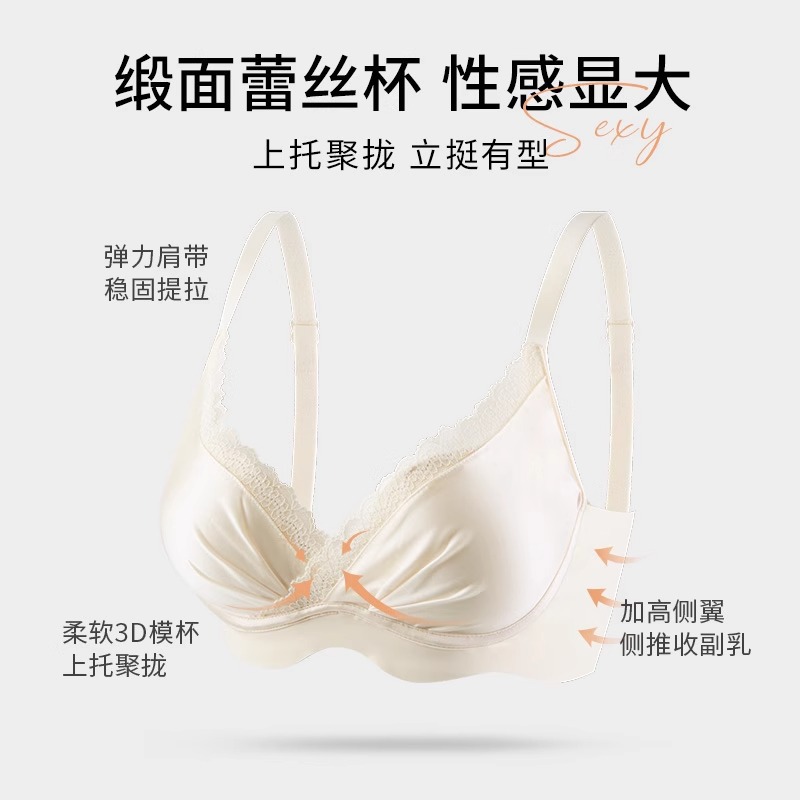 Shantou Thin Underwear Women’s Summer Small Chest Gather-up No Steel Rings for Para Breast Sexy Lace Adjustable Bra Jieyang