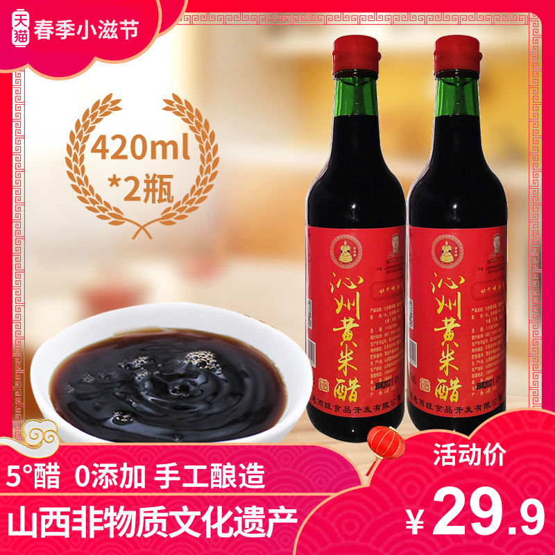 Shanxi specialty Qinzhou yellow millet vinegar 5 degrees 420ml*2 bottles of mature vinegar rice vinegar handmade pure grain household edible vinegar