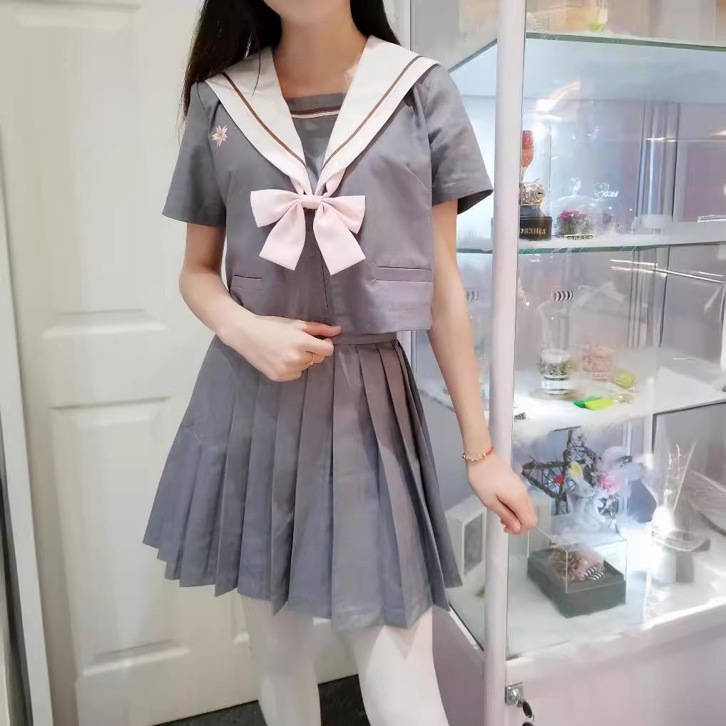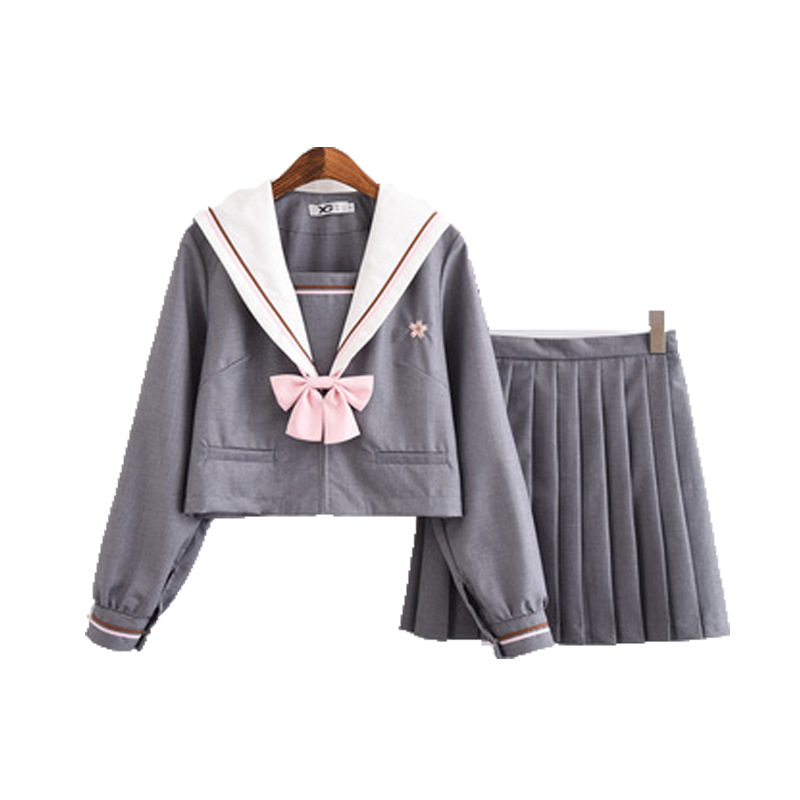 | nameOriginal | Shanying Japanese student class school uniform JK uniform Orthodox soft girl gray pink embroidered sailor suit long short sleeve suit autumn women |