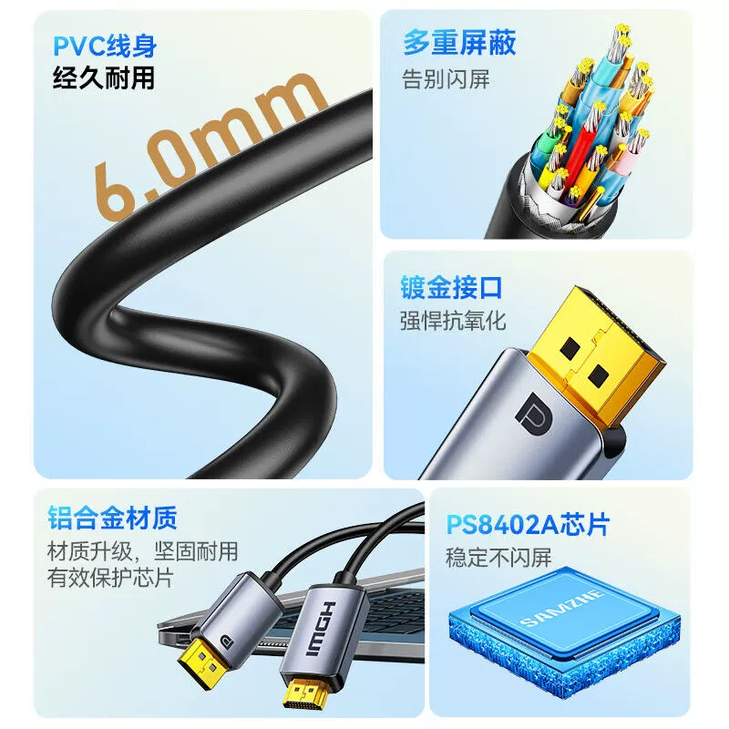 | nameOriginal | Shanze DP to HDMI adapter cable 4K HD video converter cable DP to HDMI suitable for laptop computer |