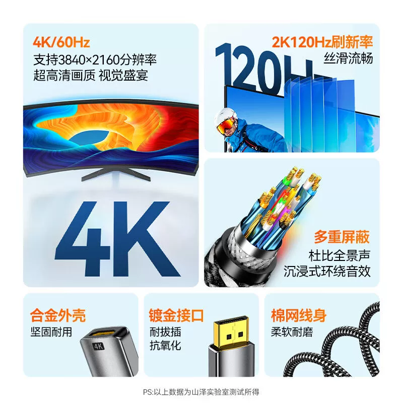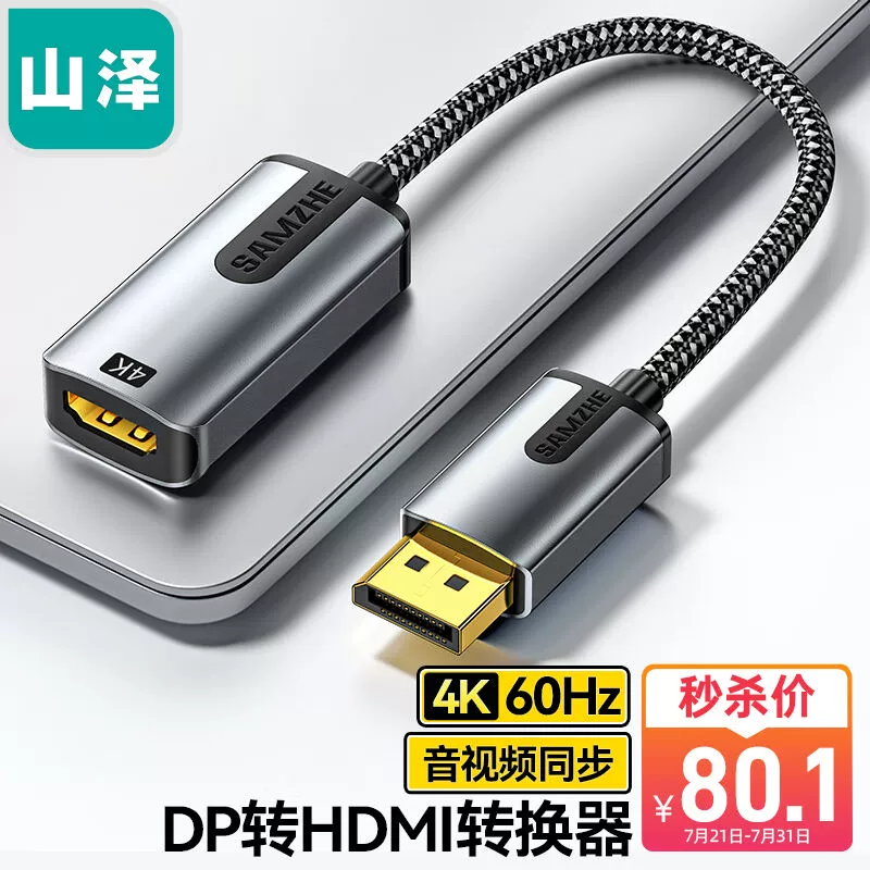 Shanze DP to HDMI Converter Cable 4K60Hz HD DisplayPort Male to Female Adapter Notebook