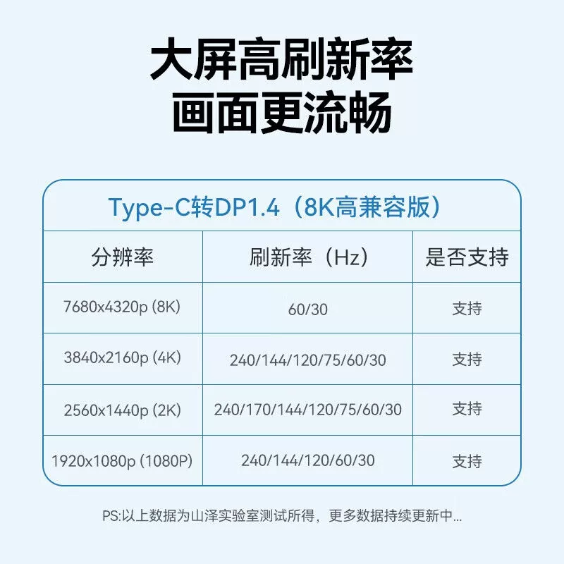 | nameOriginal | Shanze Type-C to DP1.4 adapter cable 8K laptop TV monitor converter 4K240Hz suitable |
