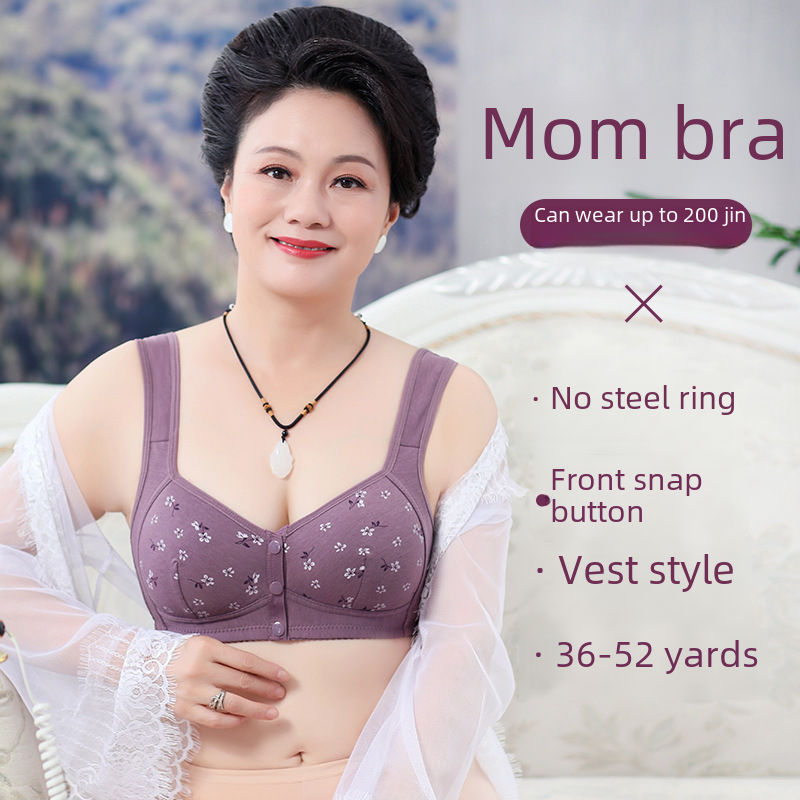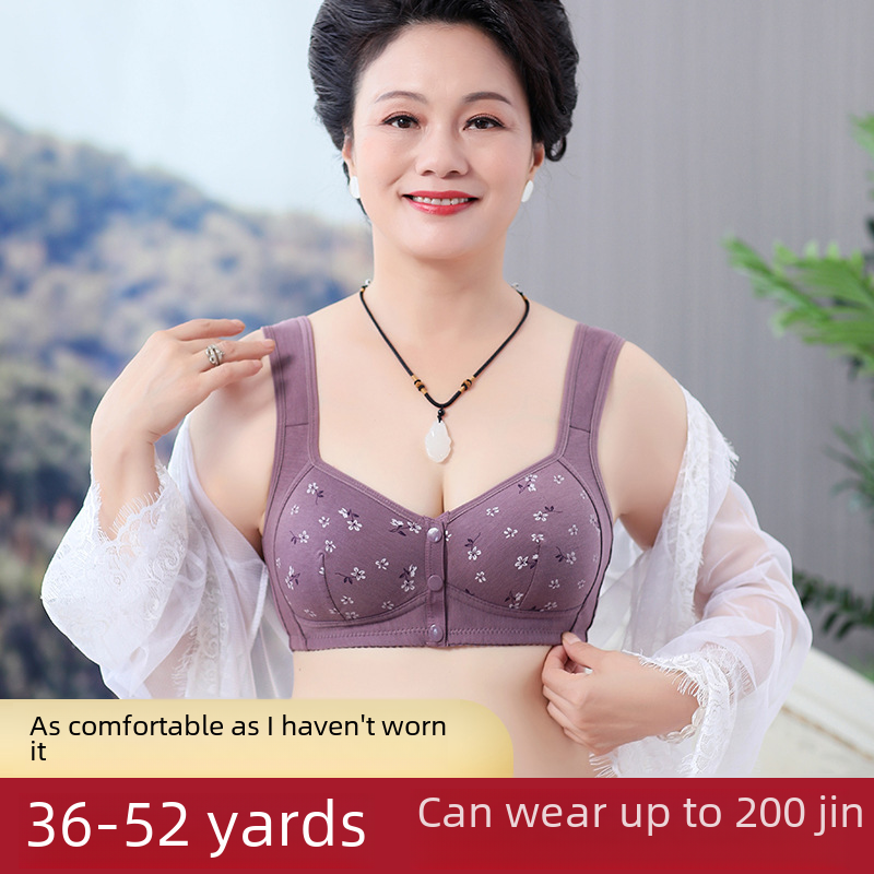 Shape Cup Front Buckle Middle-aged and Elderly Underwear Women’s Printed Wide Shoulder Strap Vest New Large Size Bra