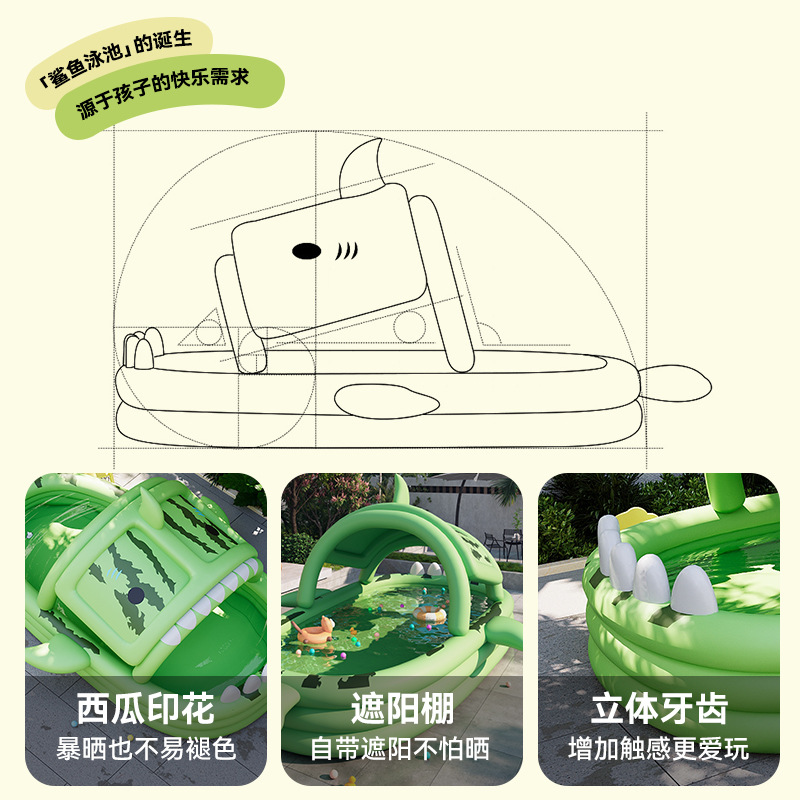 Shark Inflatable Swimming Pool Children's Home Courtyard Outdoor Swimming Pool Adult Kids Play Pool Paddling Pool Rural Courtyard