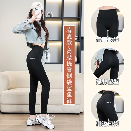 | nameOriginal | Shark library with side bag female spring and autumn outer wear 2024 high waist slim hip belly yoga Barbie leggings wholesale |