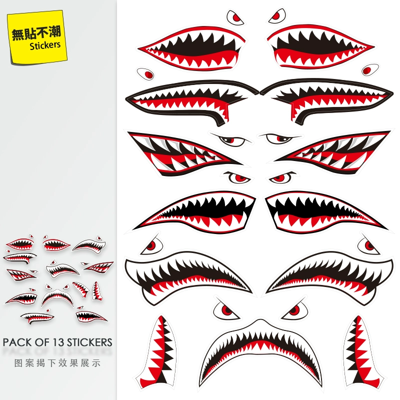 Shark Mouth Personalized Creative Covering Scratches Decoration Mobile Phone Computer Luggage Sticker Guitar Refrigerator Sticker Waterproof