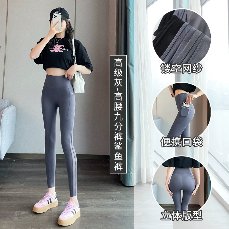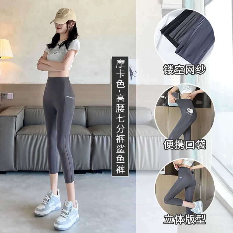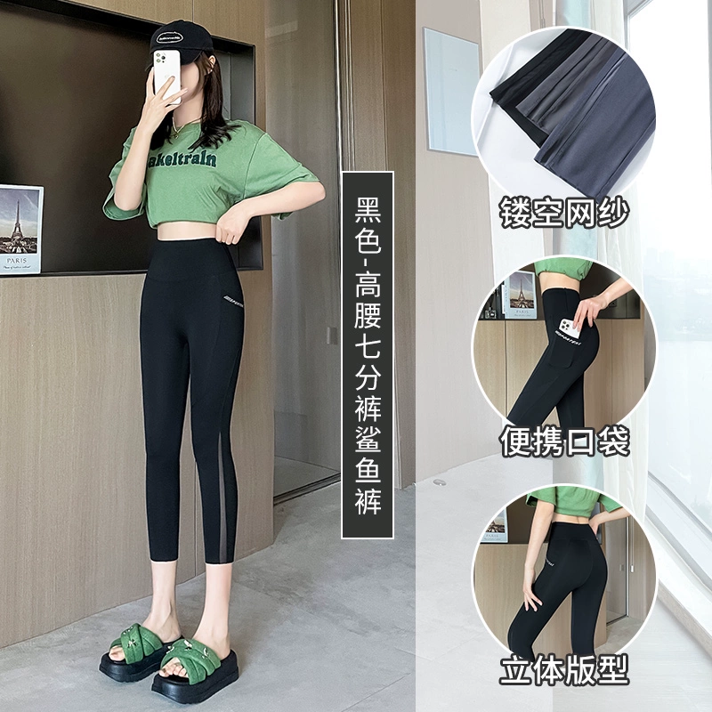 | nameOriginal | Shark pants women's outer wear summer thin pocket mesh tummy control butt lift leggings stretch large size yoga Barbie pants |