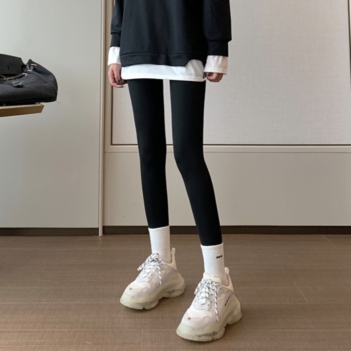 Shark skin leggings women’s autumn and winter fleece-lined thickened small slim fit slimming black outer wear cropped yoga pants