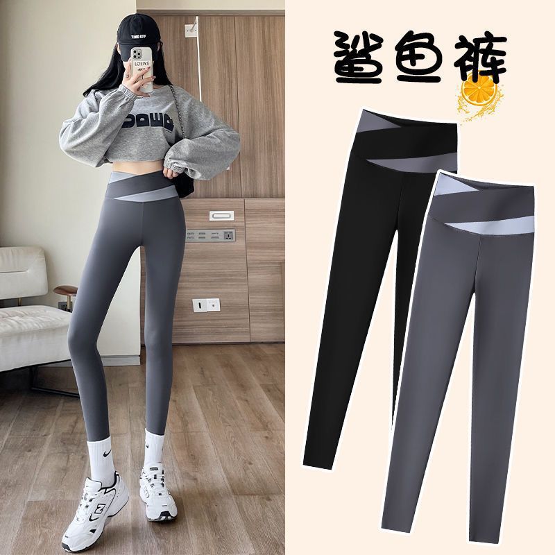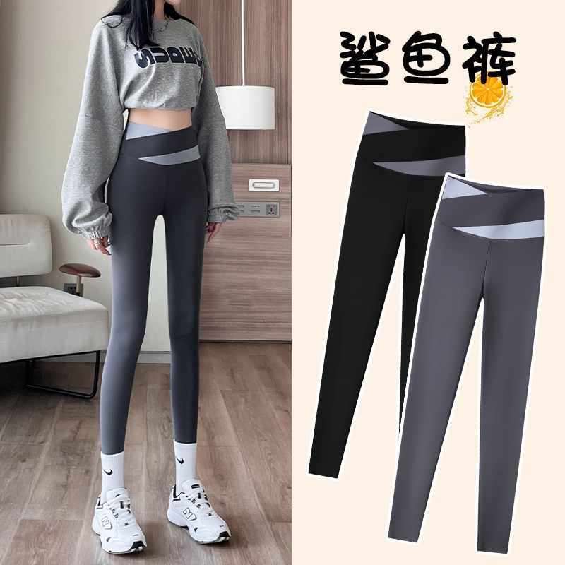 Shark skin leggings women's spring and autumn thin outer wear 2023 new plus size hip belly tight yoga Barbie pants