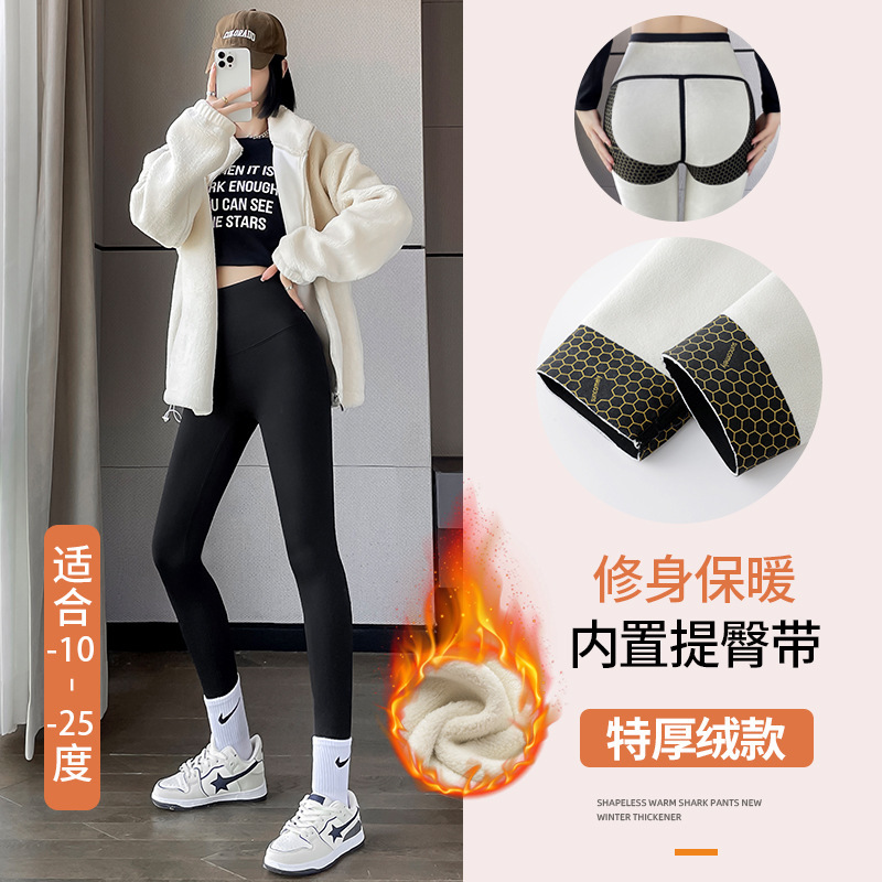 | nameOriginal | Shark Skin Leggings Women's Winter fleece-lined Thickened plus size High Waist Belly Tight Yoga Pants Black and Gold Hip Shark Pants for Women |
