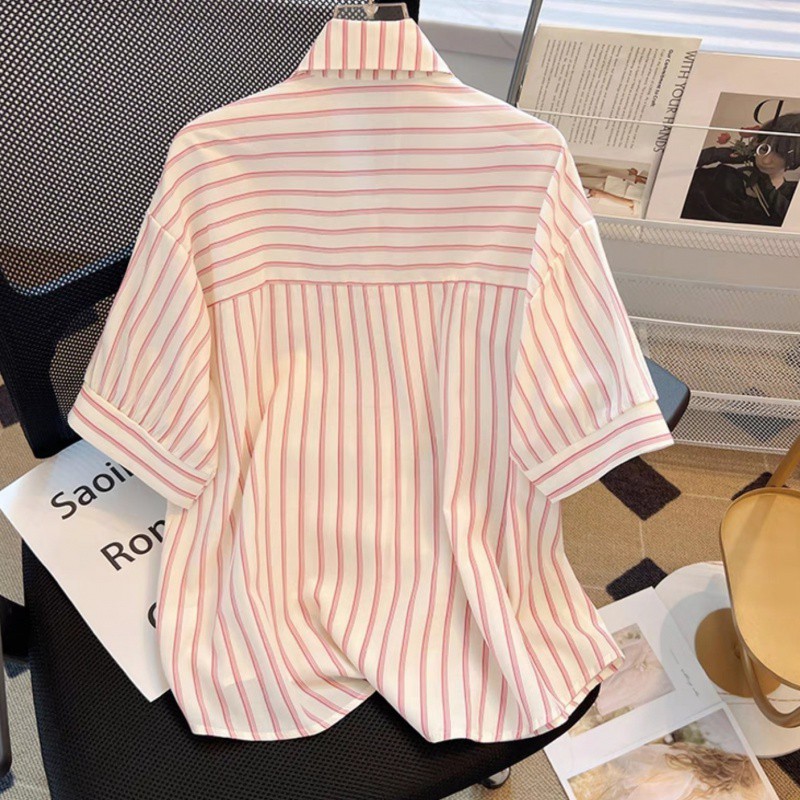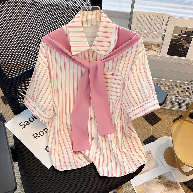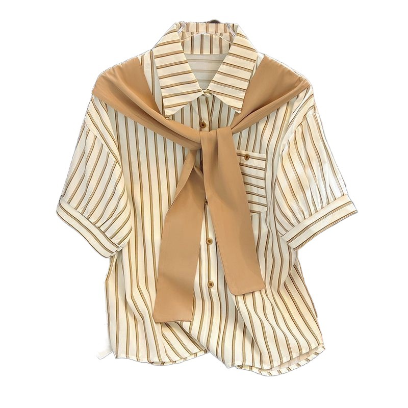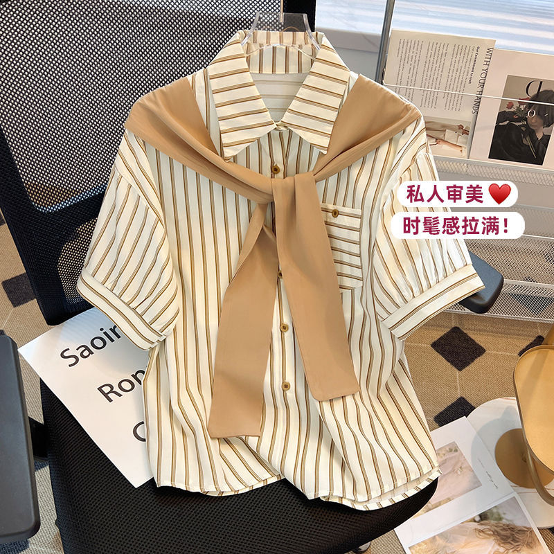 | nameOriginal | Shawl Fake Two-piece Striped Short-sleeved plus size Shirt 2024 Summer New Arrival Fashionable All-match Design Niche Top |