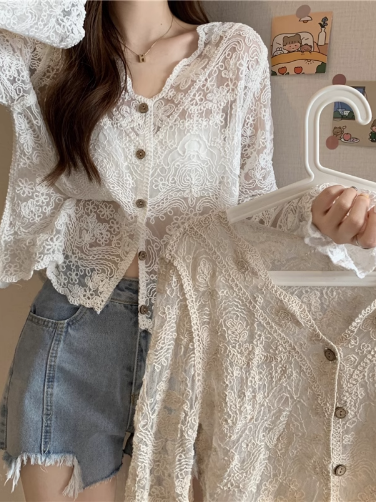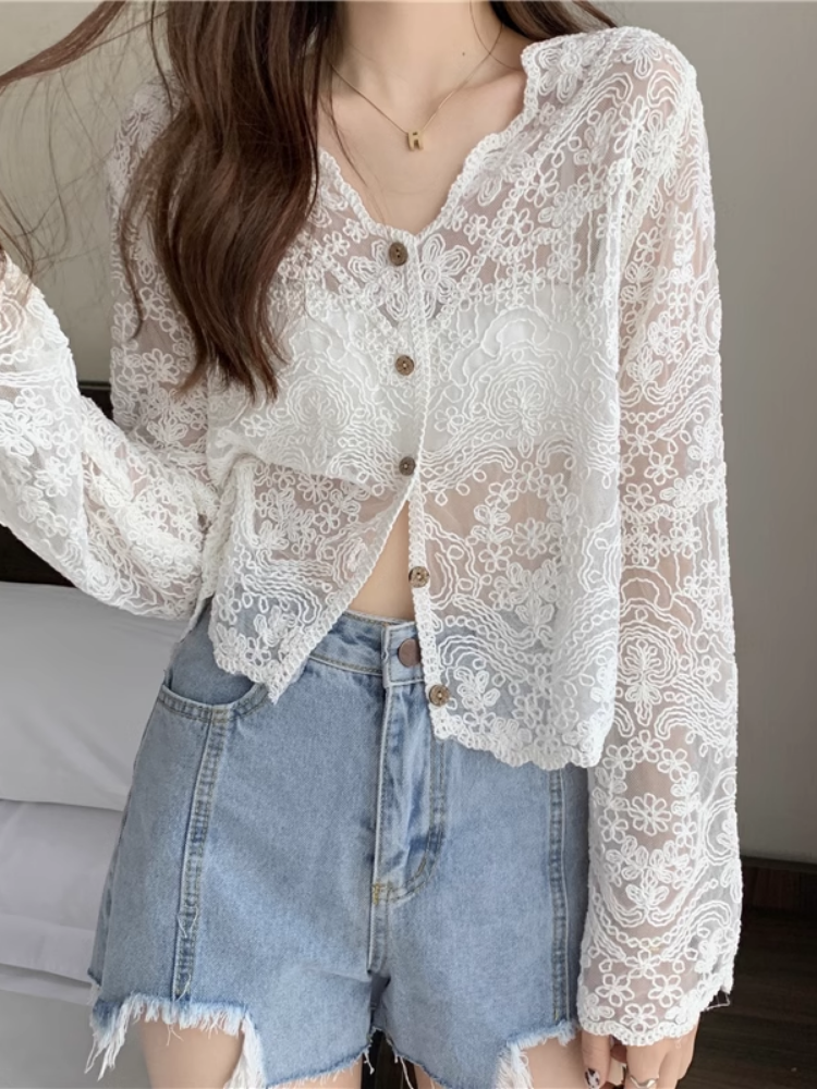 Shawl Summer with Sling Skirt Lace Cardigan Blouse Very Fairy Thin Sunscreen Super Fairy Women's Top