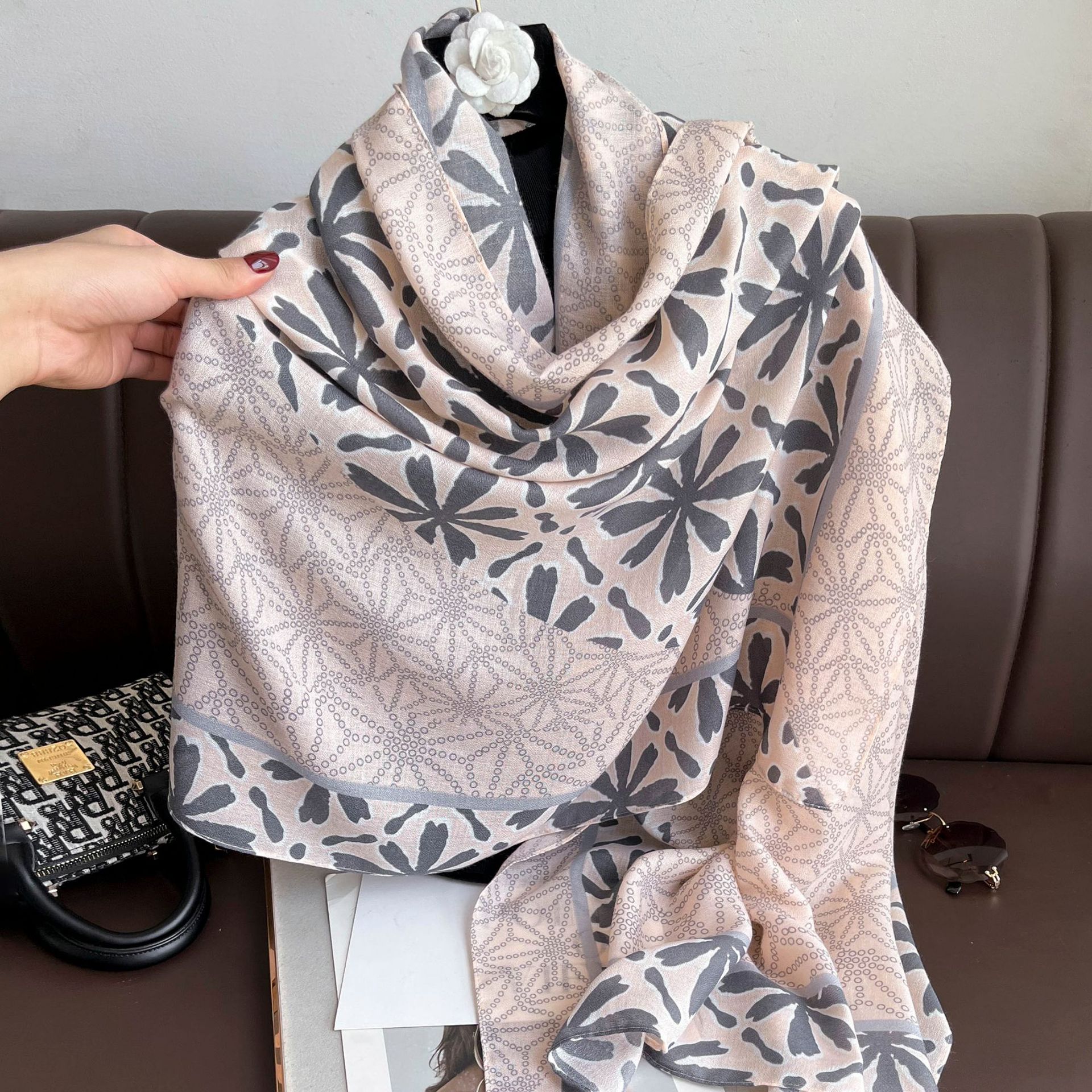 Shawl Women's Autumn and Winter Korean-style All-match Scarf Printed Tassel Cotton and Linen Scarf Long Beach Towel Desert Sunscreen Silk Scarf