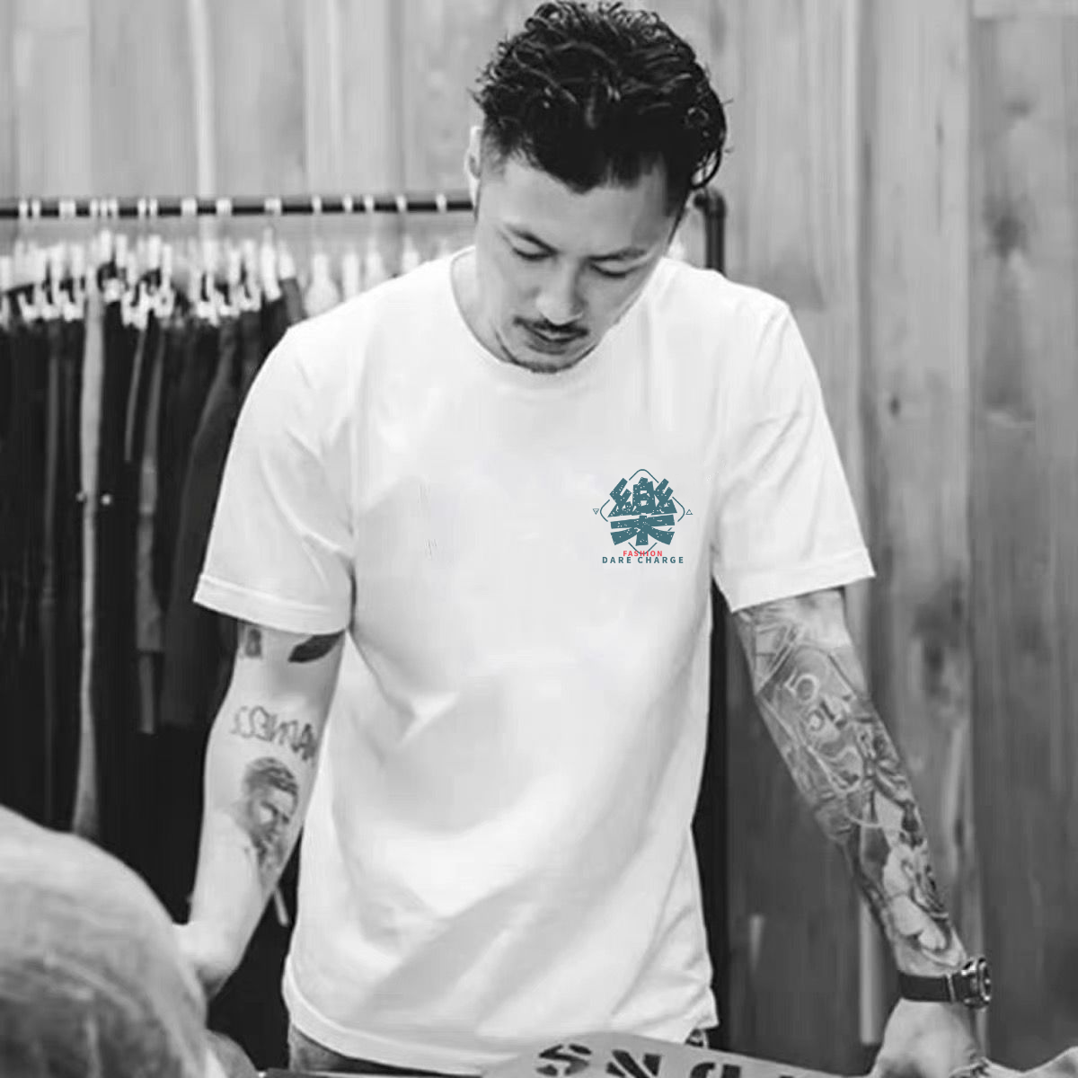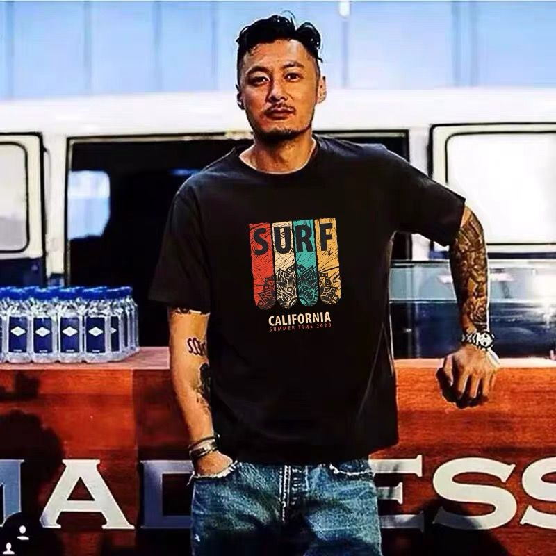 Shawn Yue trendy brand pure cotton short-sleeved t-shirt men's 2024 new ins American retro summer beach black half-sleeve