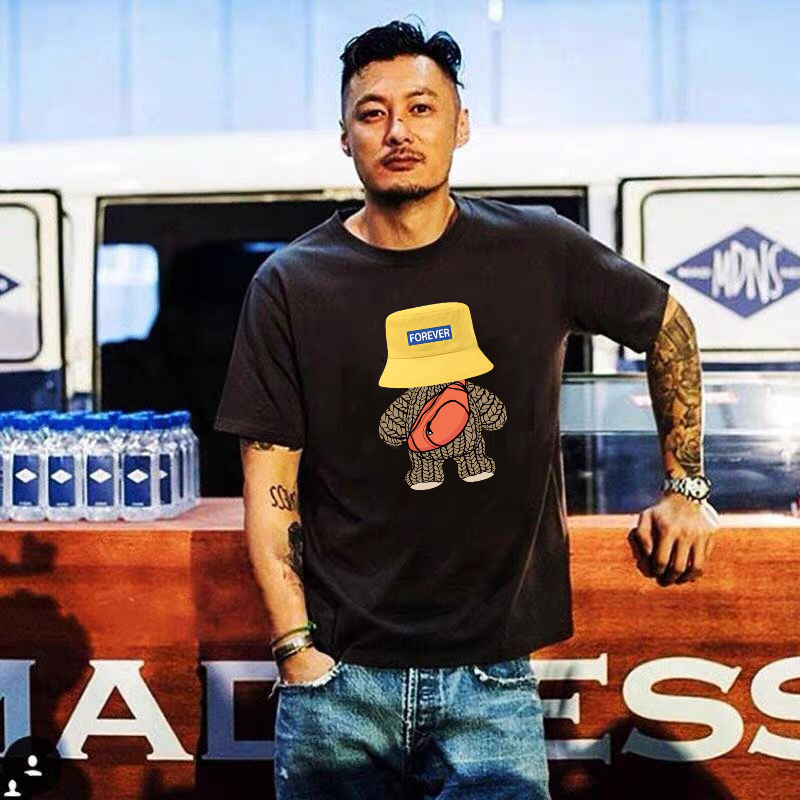 Yu Wenle Chao brand cotton short -sleeved T -shirt 2024 new Ins American retro summer beach black half -sleeve
