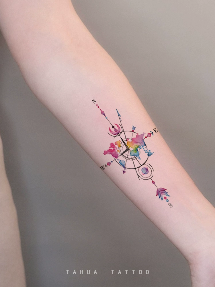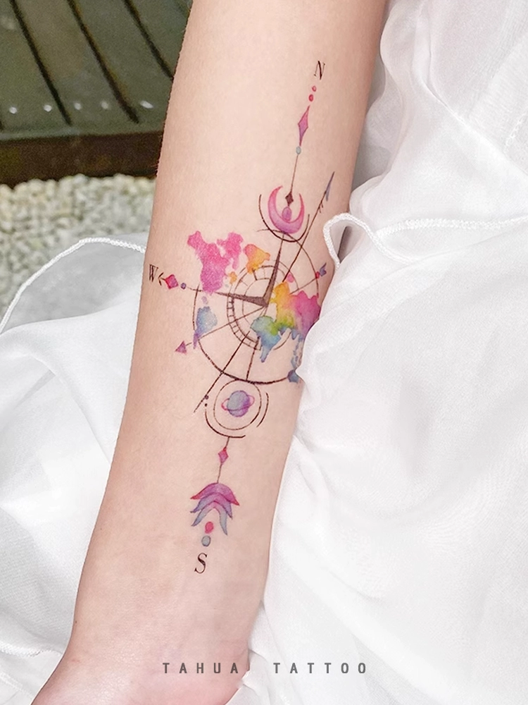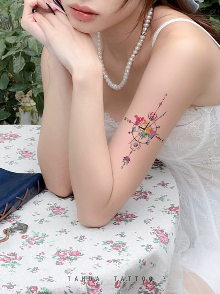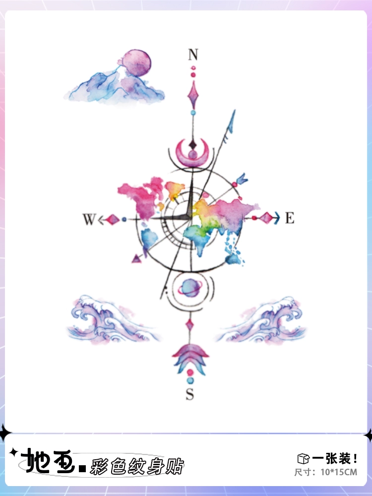 | nameOriginal | She draws compass compass color tattoo sticker mountain wave waterproof long-lasting women |