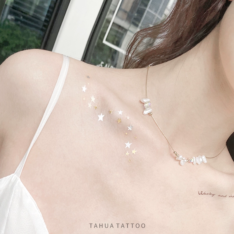 | nameOriginal | She painted gold-plated stars, collarbone tattoo stickers, gold pattern neck, long-lasting waterproof internet celebrity female stickers |