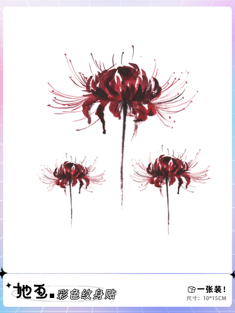| nameOriginal | She painted ink flowers of the other side, manzhushahua tattoo stickers, red simulated chest and back, waterproof and long-lasting for women |