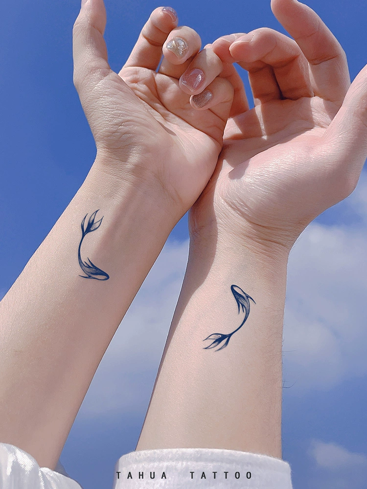 She painted koi herbal tattoo stickers juice semi-permanent waterproof long-lasting female wrist male couple stickers simulated goldfish