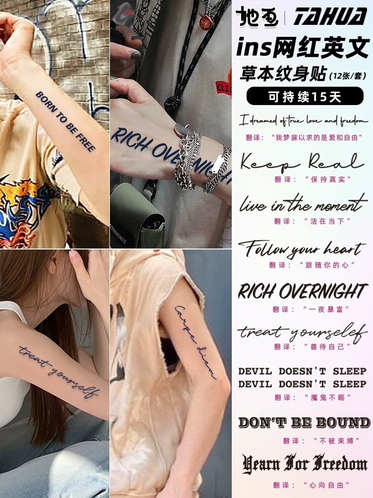 She painted neck English short sentence juice herbal tattoo stickers