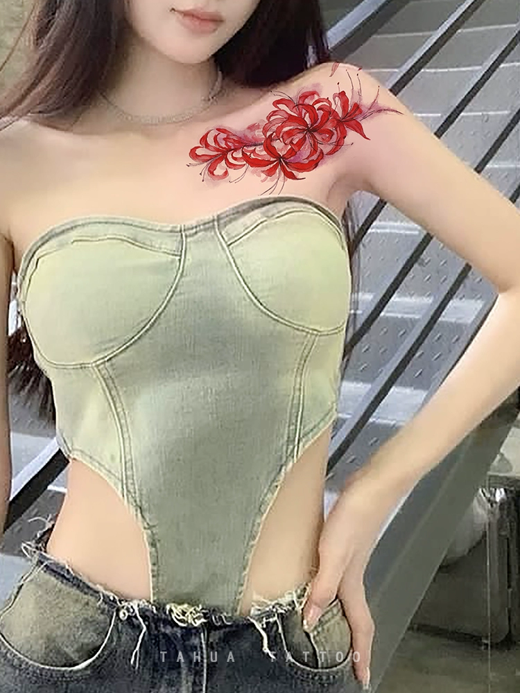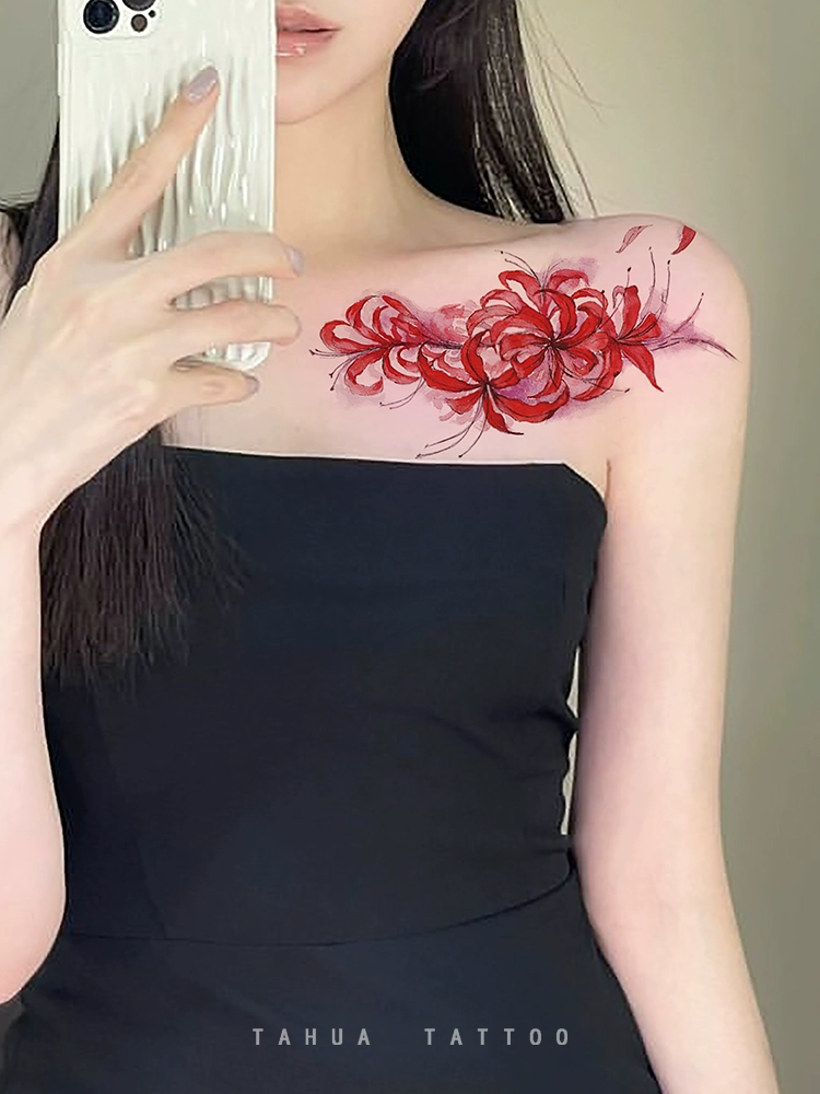 She painted the other shore flower collarbone tattoo stickers Manzhushahua large pattern tattoo waterproof female long-lasting semi-permanent