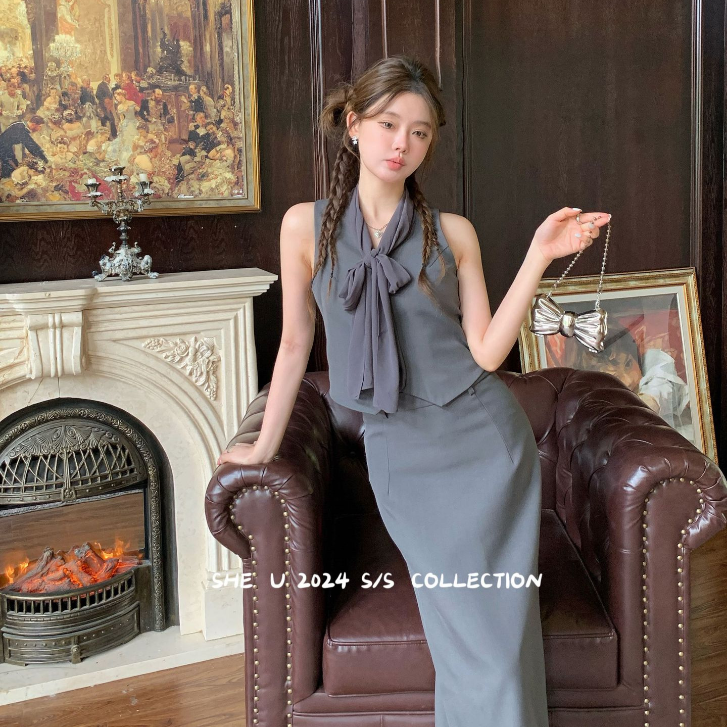 SHE U Thirteen Row French High Style Bow Lace Vest Top 2024 Summer Sleeveless Vest Top