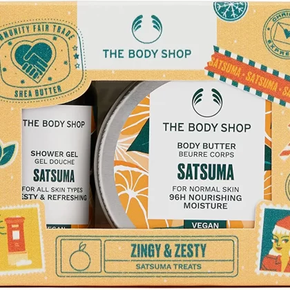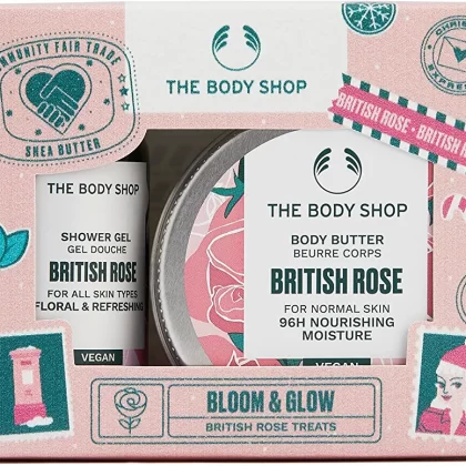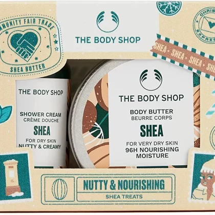 The Body Shop Nutty & Nourishing Shea Treats Gift Set is the perfect solution for those with very dry skin. This set includes two hydrating and moisturizing vegan skincare treats that are specially formulated to nourish and revitalize your skin. The first item is a shea butter body butter that deeply moisturizes and softens your skin, leaving it feeling smooth and supple. The second item is a shea butter shower cream that gently cleanses and hydrates your skin, leaving it feeling refreshed and rejuvenated. Both products are enriched with shea butter, which is known for its nourishing and moisturizing properties. This gift set is perfect for anyone looking to pamper themselves or someone special with a luxurious and indulgent skincare experience.