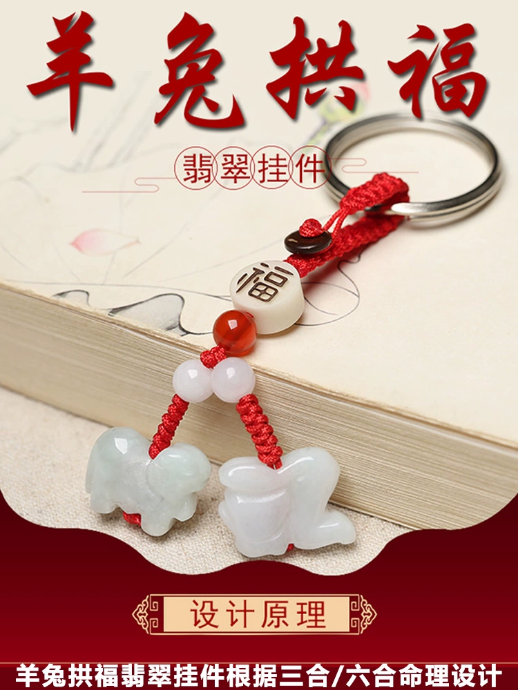 | nameOriginal | Sheep and Rabbit Gongfu 2024 Zodiac Zodiac Pig, Sheep and Rabbit Gift Mascot Triple Jade Pendant Keychain Pendant |
