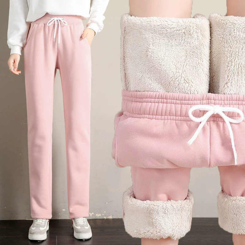 Lamb cashmere thickened and warm outside wearing high -waisted casual pants