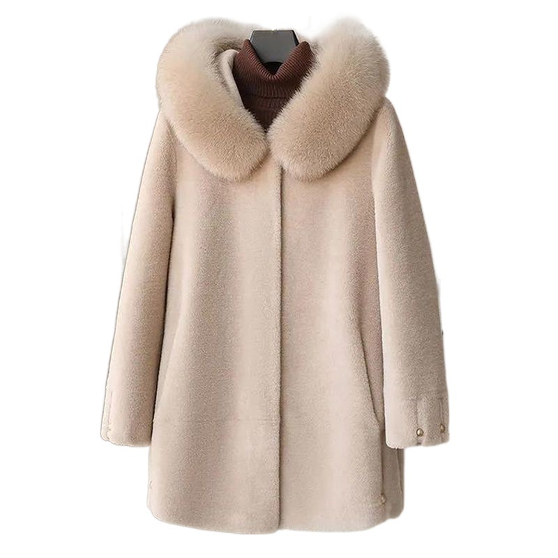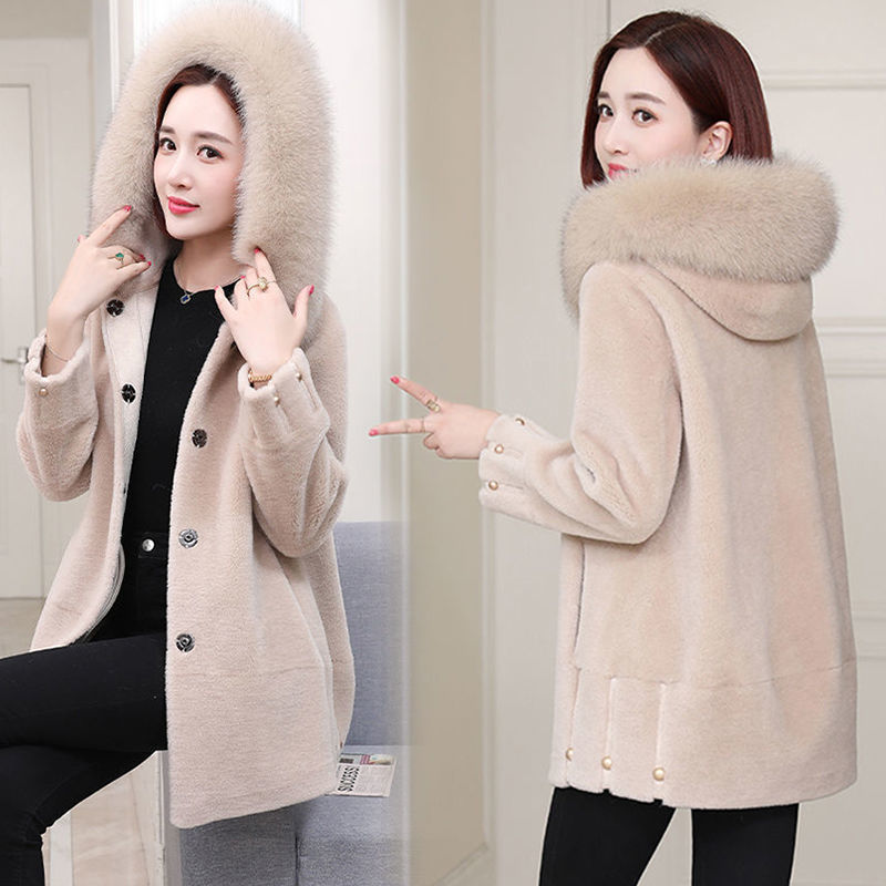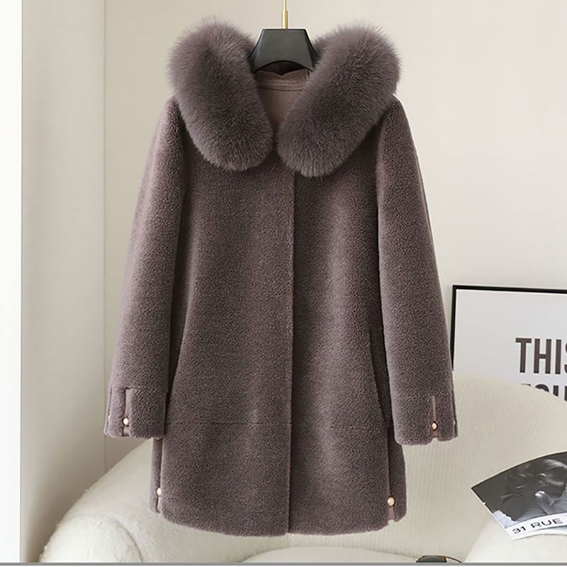 | nameOriginal | Sheepskin coat female fox fur collar hooded mom wear autumn and winter granular fleece fur integrated sheepskin coat |