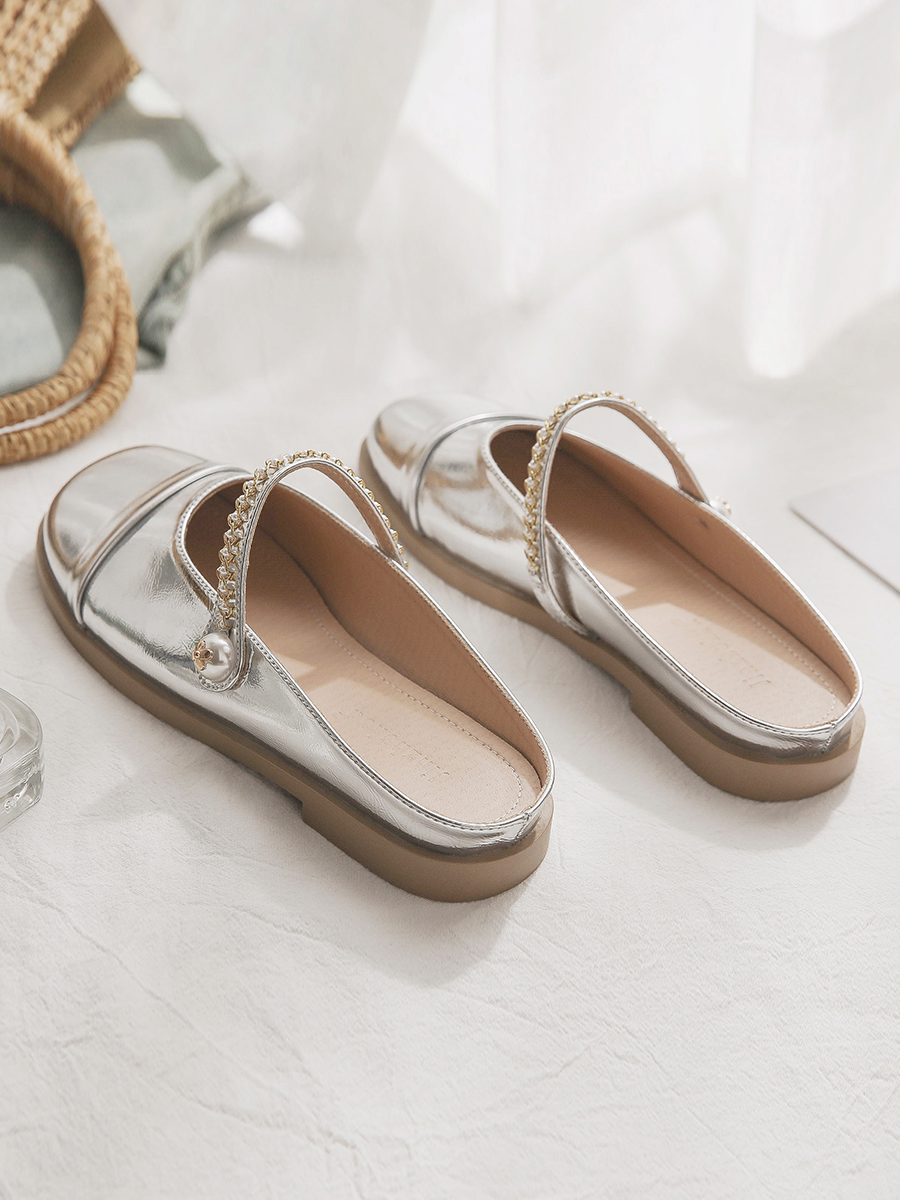 | nameOriginal | Sheepskin fairy style silver flat toe cap evening shoes |