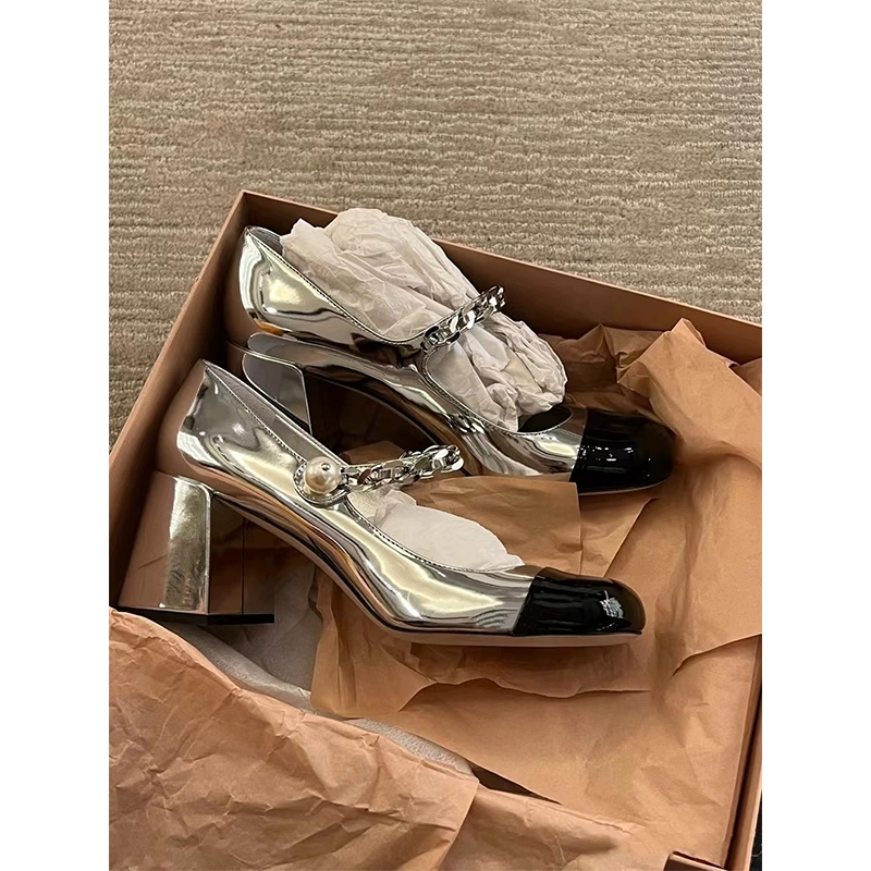 Sheepskin French Vintage Silver Mary Jane Pumps
