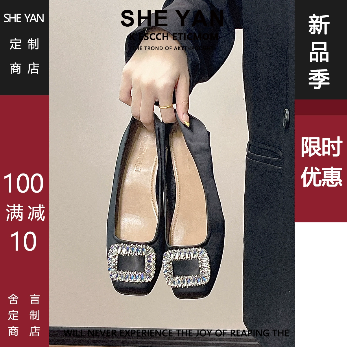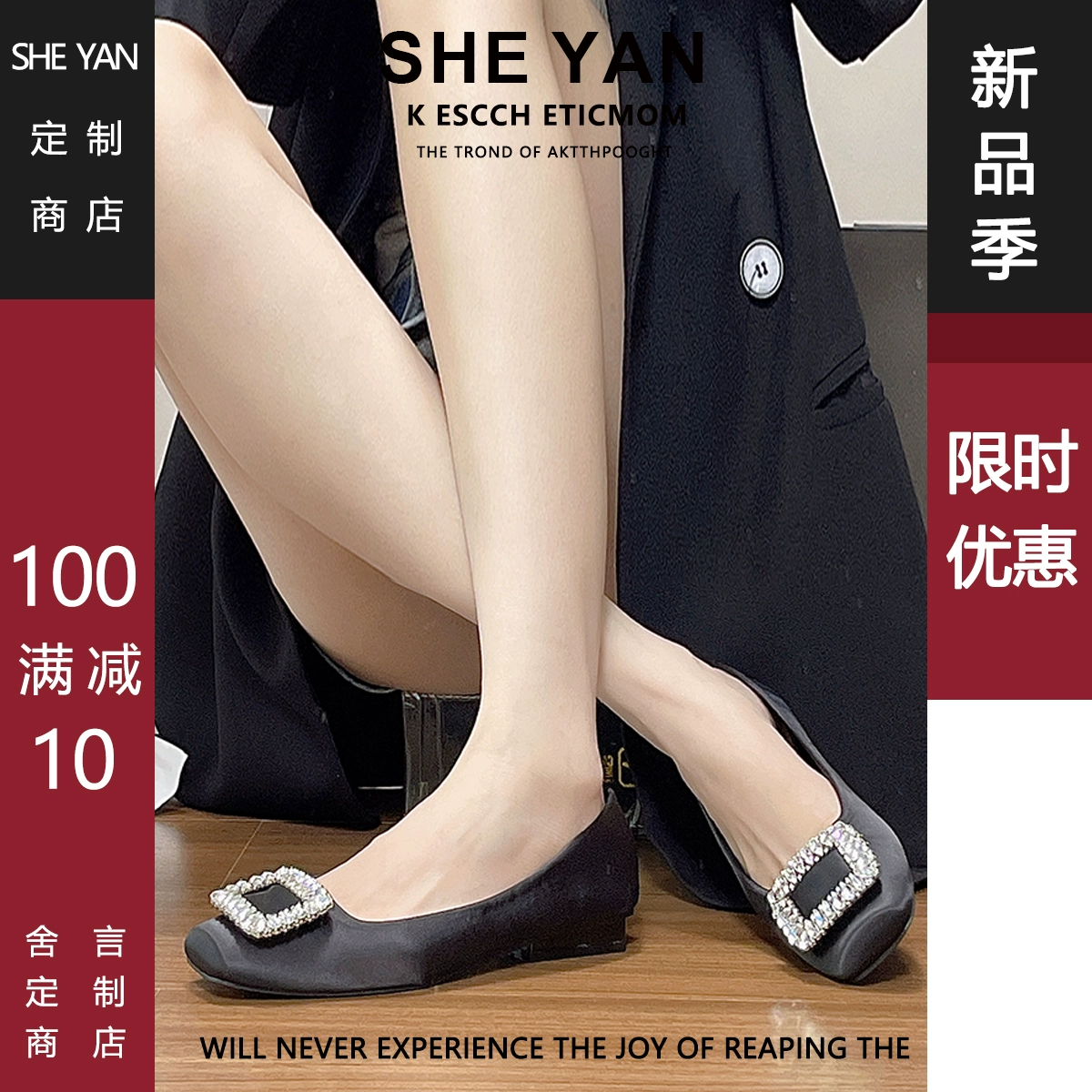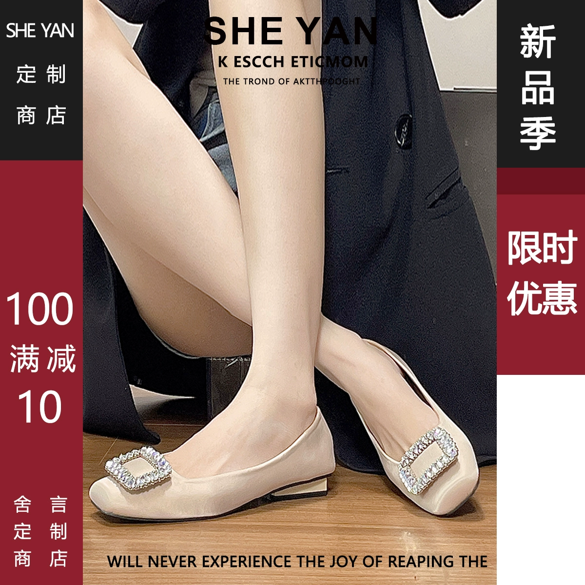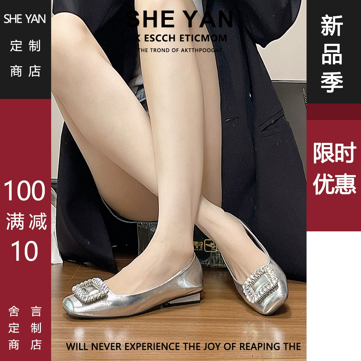| nameOriginal | Sheepskin version of rhinestone shallow mouth French square toe silver with skirt single shoes for women 2024 spring and autumn new casual flat shoes |