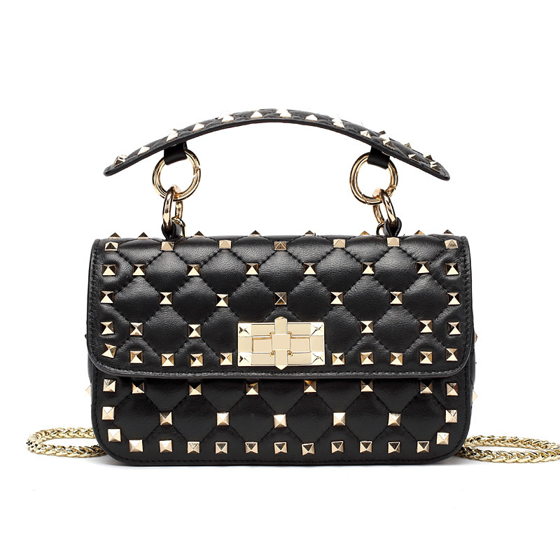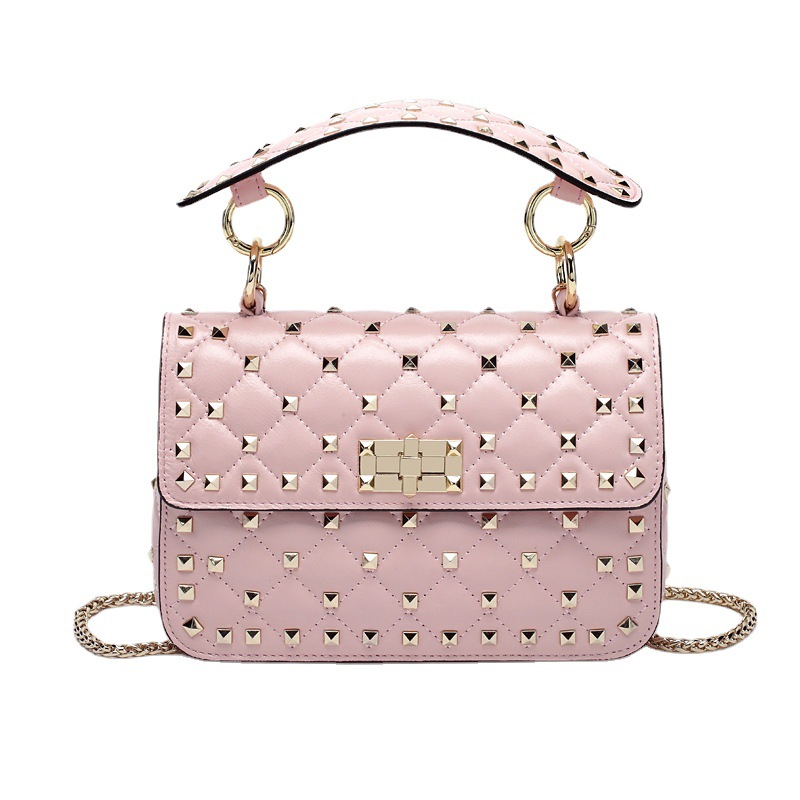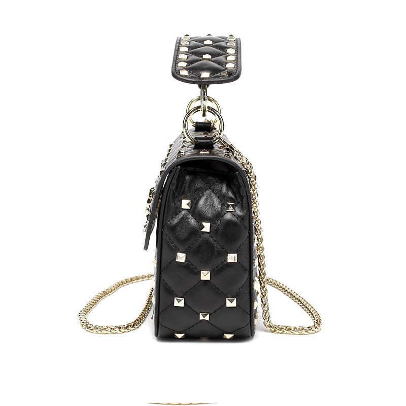 Sheepskin women's bag 2023 new Rivet small square bag soft leather punk style chain Women's bag shoulder portable leather bag