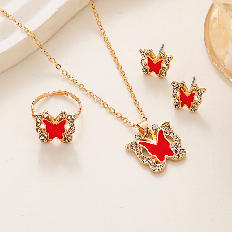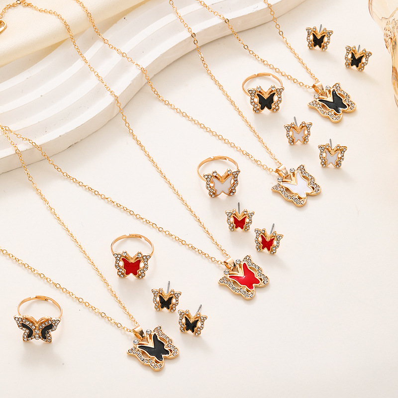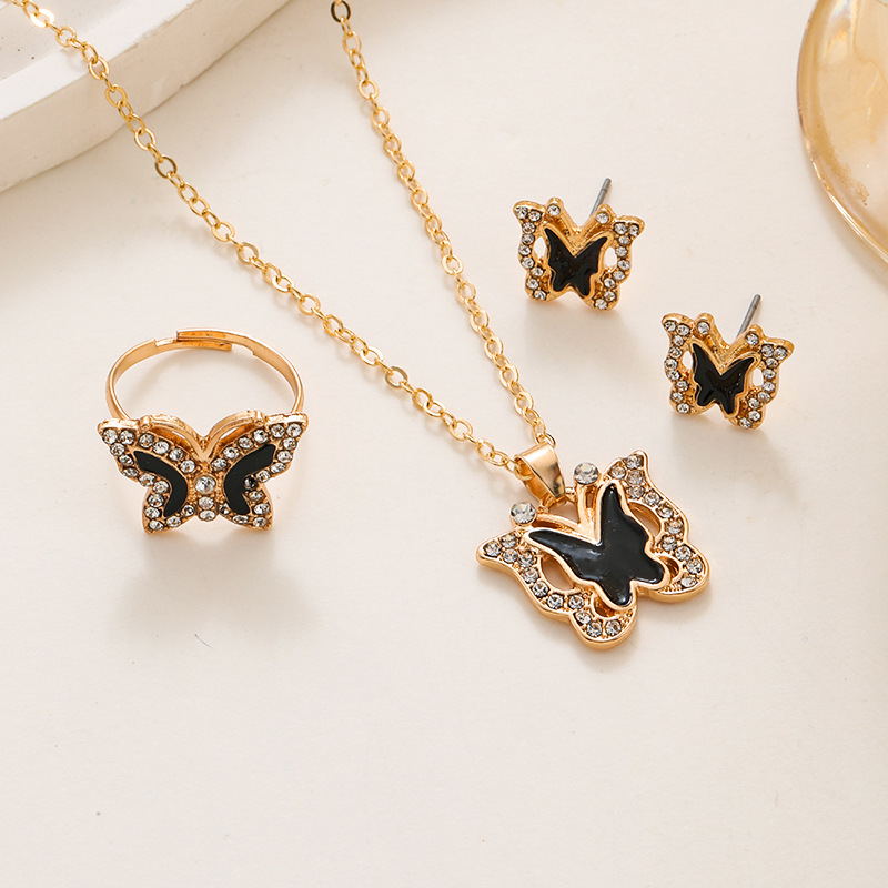 | nameOriginal | shein Hot Diamond Hollow Butterfly Necklace Jewelry suit Women's European and American Fashion High-end Ring Earrings 3 Pieces |