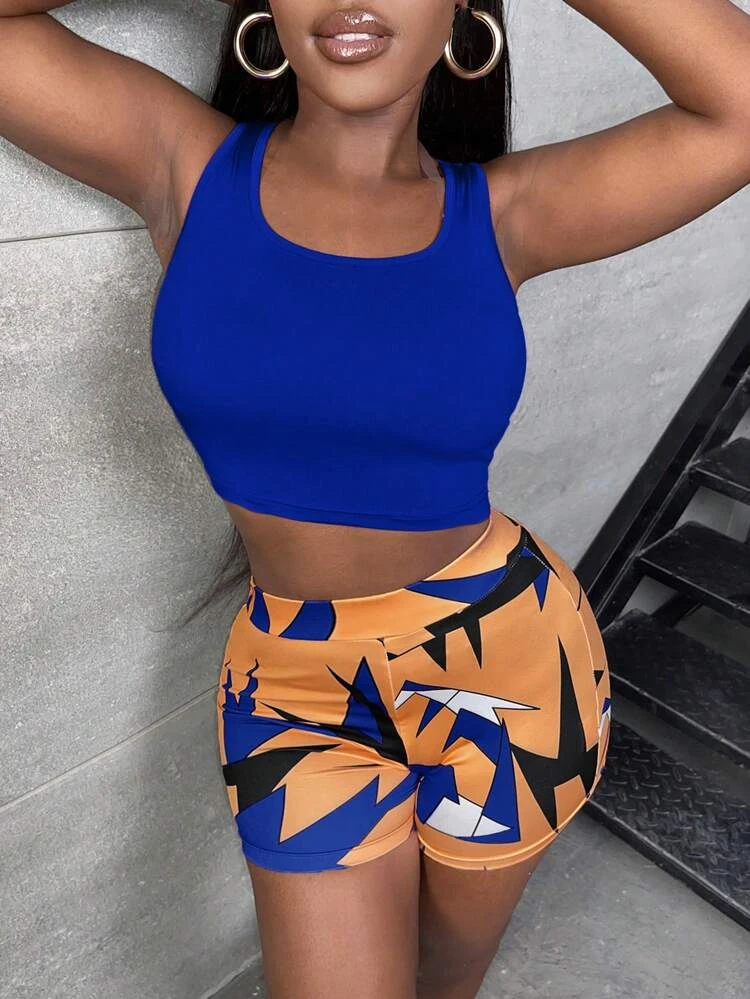 | nameOriginal | SHEIN SXY Solid Crop Tank Top & Geo Print Shorts |