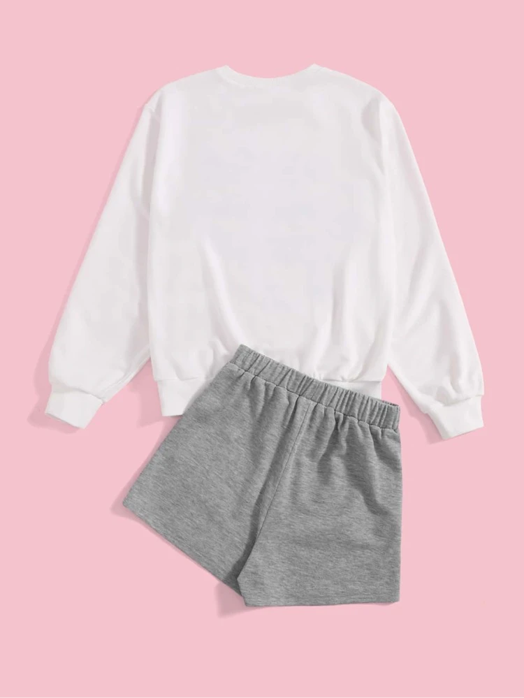 | nameOriginal | SHEIN Teen Girls Letter And American Flag Print Pullover & Shorts |