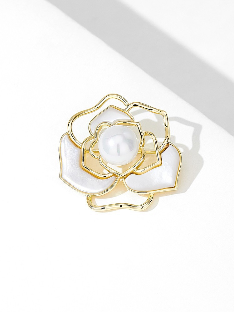 | nameOriginal | Shell hollow camellia corsage rose brooch women's pearl pin temperament tide coat chest accessories. |