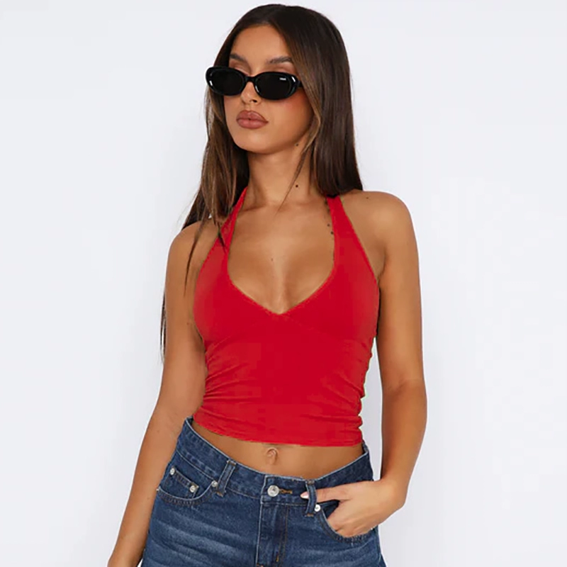 | nameOriginal | shemoda European and American ins style V-neck halter top for women, summer versatile sexy backless slim crop top |