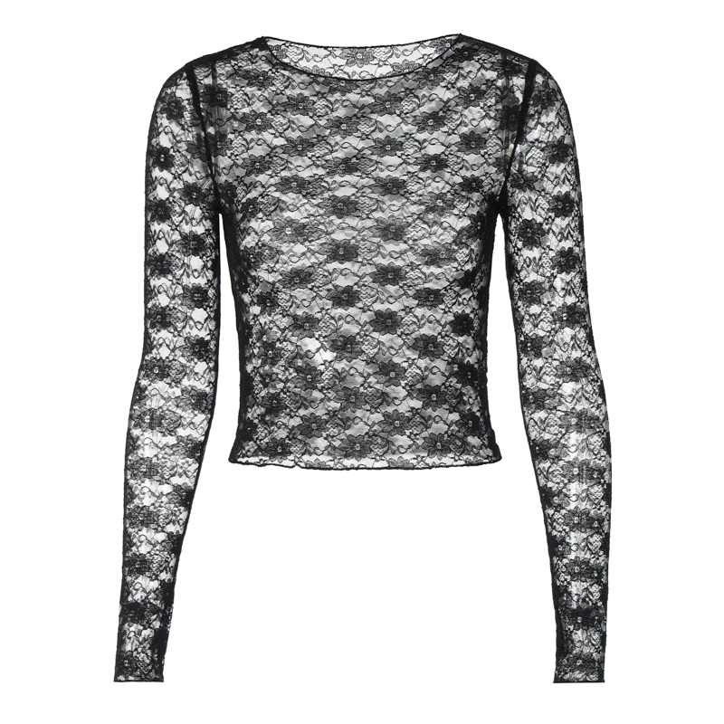 shemoda semi-transparent long-sleeved T-shirt worn with slim fit mesh