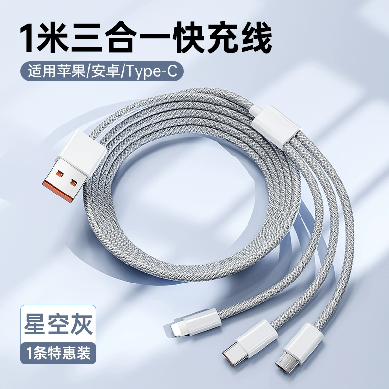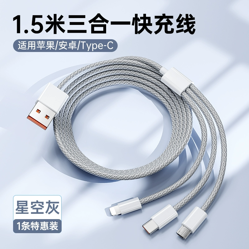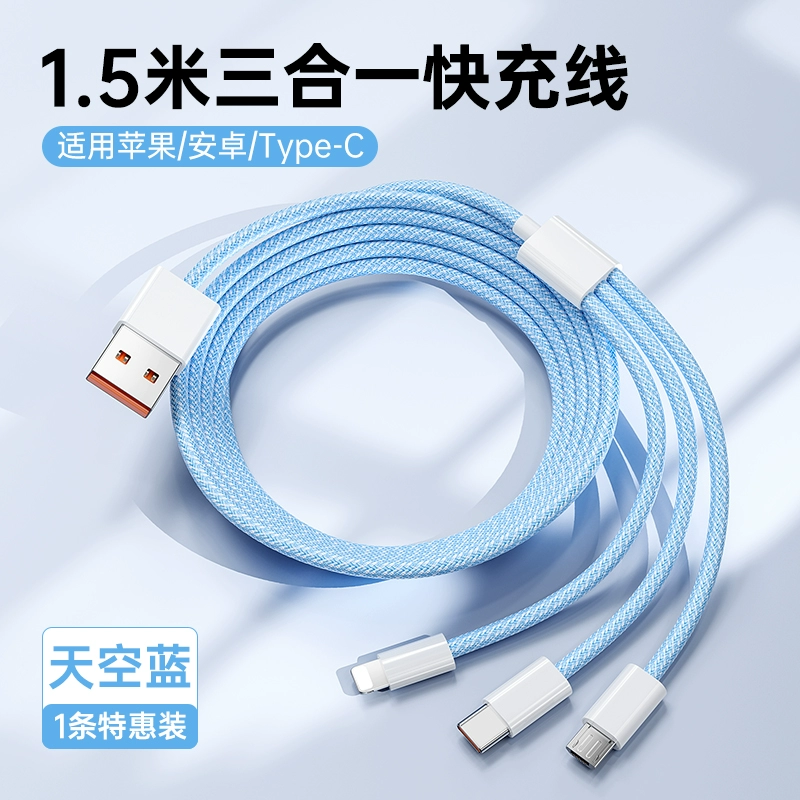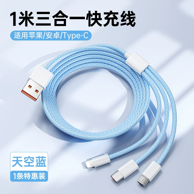 | nameOriginal | Shenai 120W super fast charging three-head data cable three-in-one suitable for Huawei Apple Xiaomi oppovivo Android typec one-to-three charging cable mobile phone car multi-head flash charging |