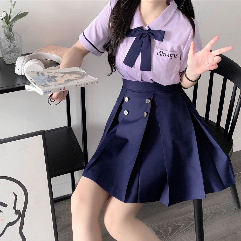 | nameOriginal | [Shenbei JK] Qing Ying University jk Uniform Box Pleated Skirt Thailand Uniform Shirt Senior high school Student Class suit |