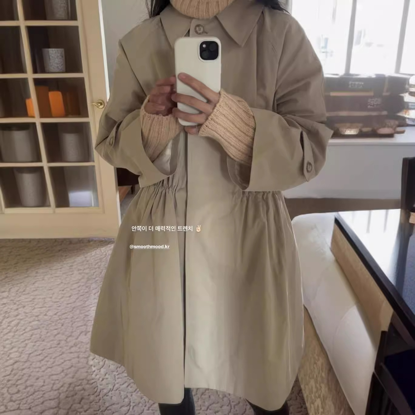 | nameOriginal | Sheng2024 spring new South Korea Dongdaemun smooth * ood loose retro temperament drawstring trench coat for women |