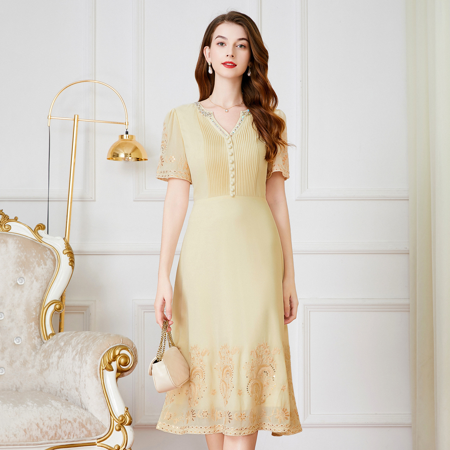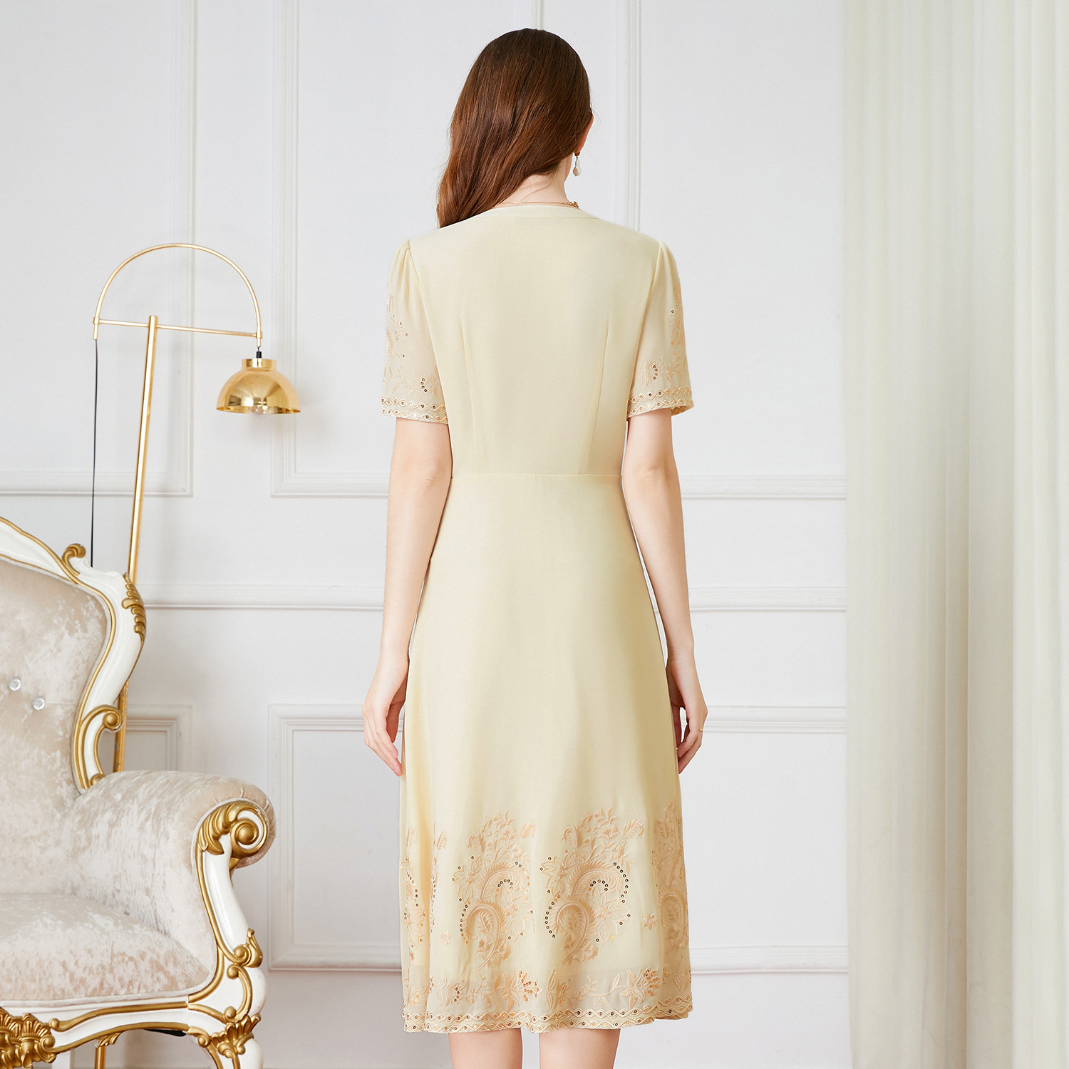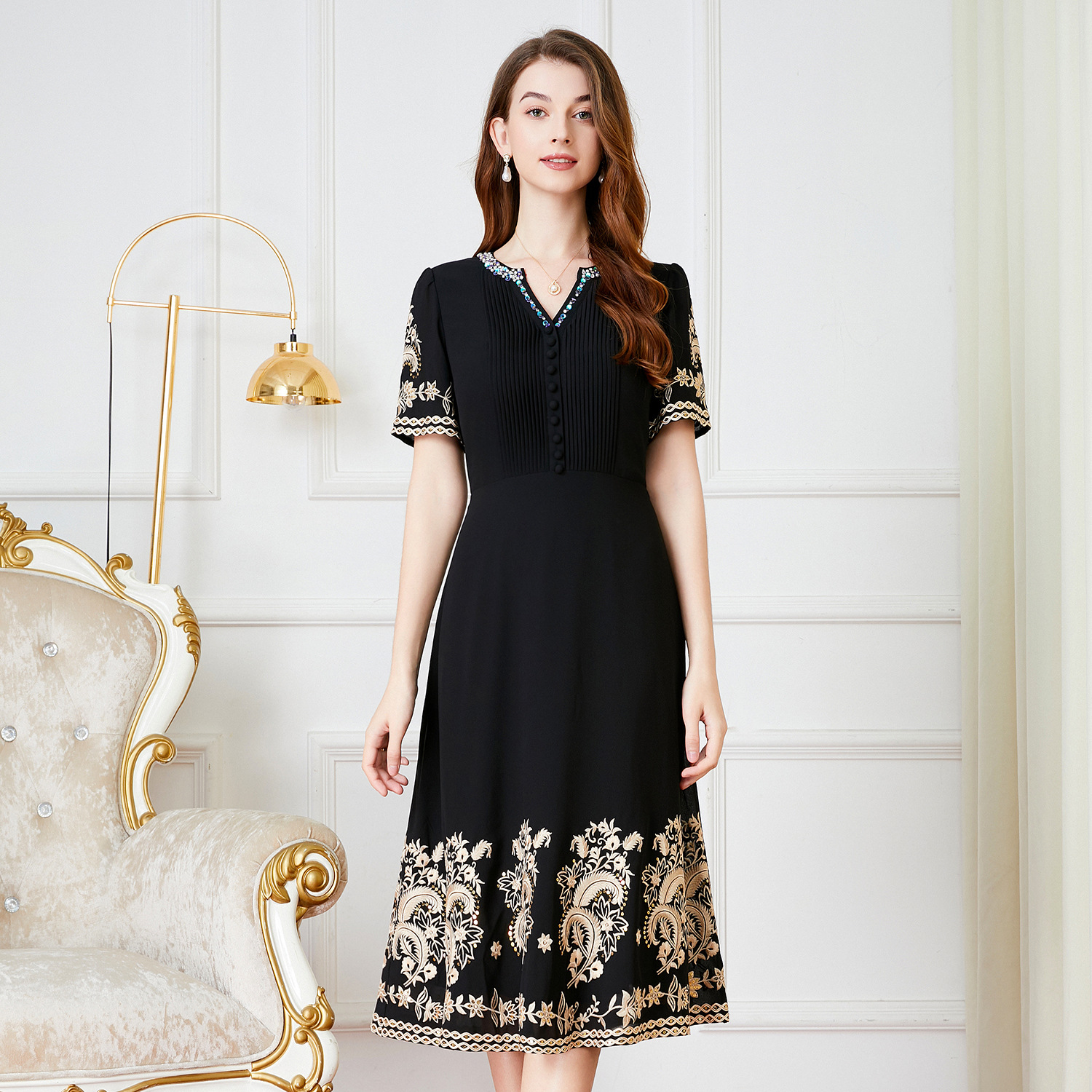 | nameOriginal | Shenzhen high-grade mesh plus size dress summer short sleeve new banquet dress mother dress a generation of hair |