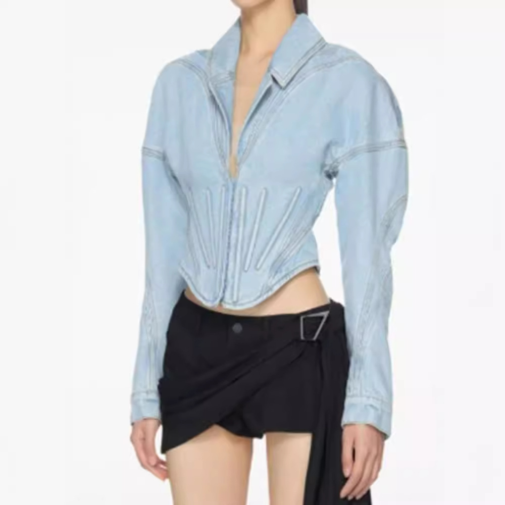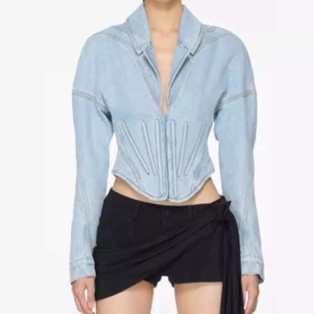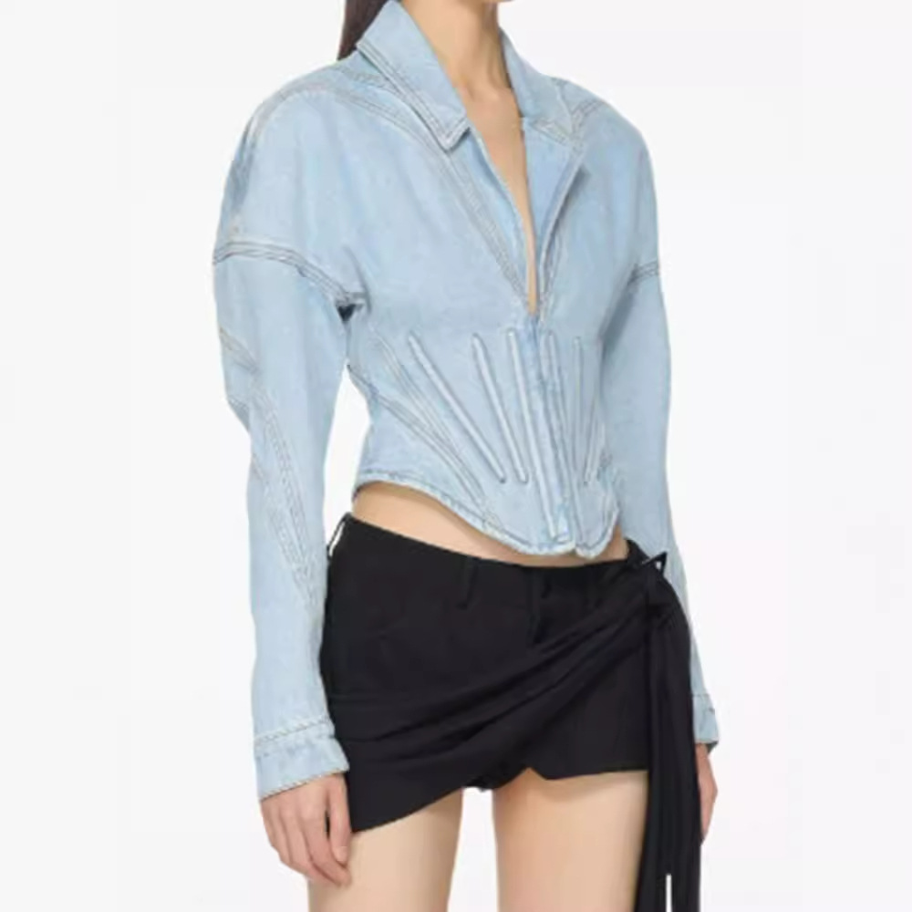 | nameOriginal | Shenzhen Nanyou Fishbone Denim Coat Women's 24 Summer New High-end Sense Design Sense European and American Fashionable Thin Top |