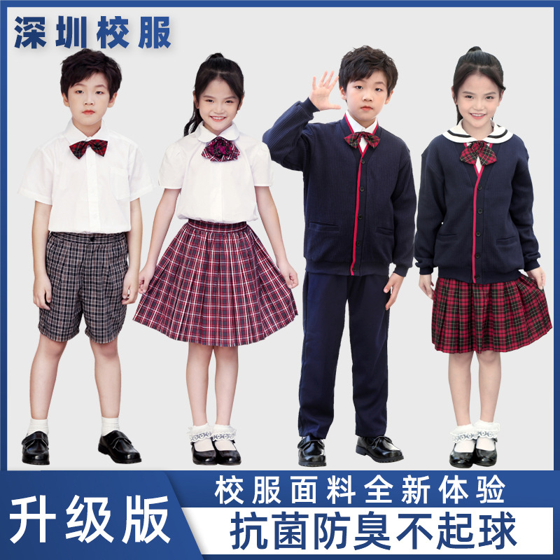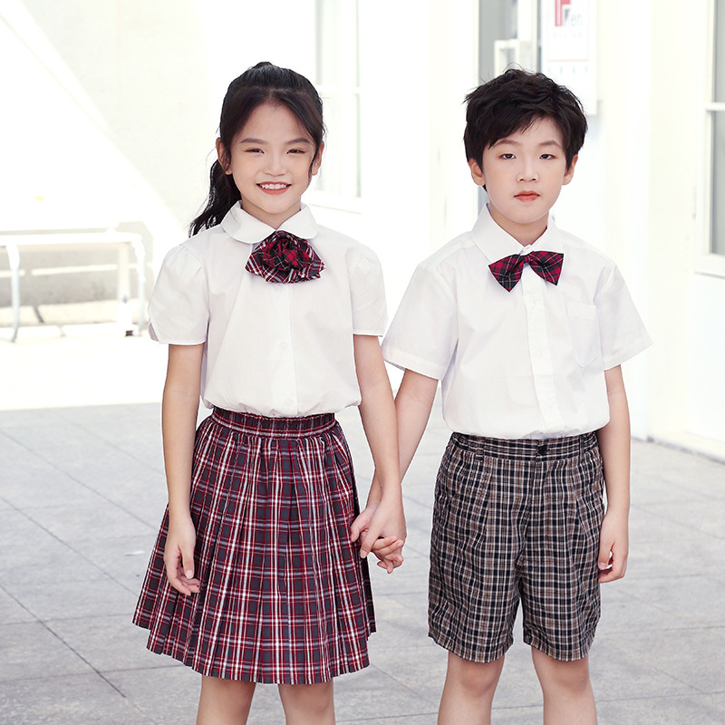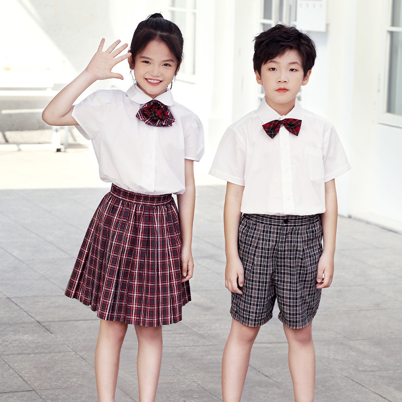 | nameOriginal | Shenzhen Primary School Students' Dress School Uniform Summer Uniform Set Men's and Women's Short-sleeved Shirt Plaid Trousers Skirt Short Skirt Bow Ties |