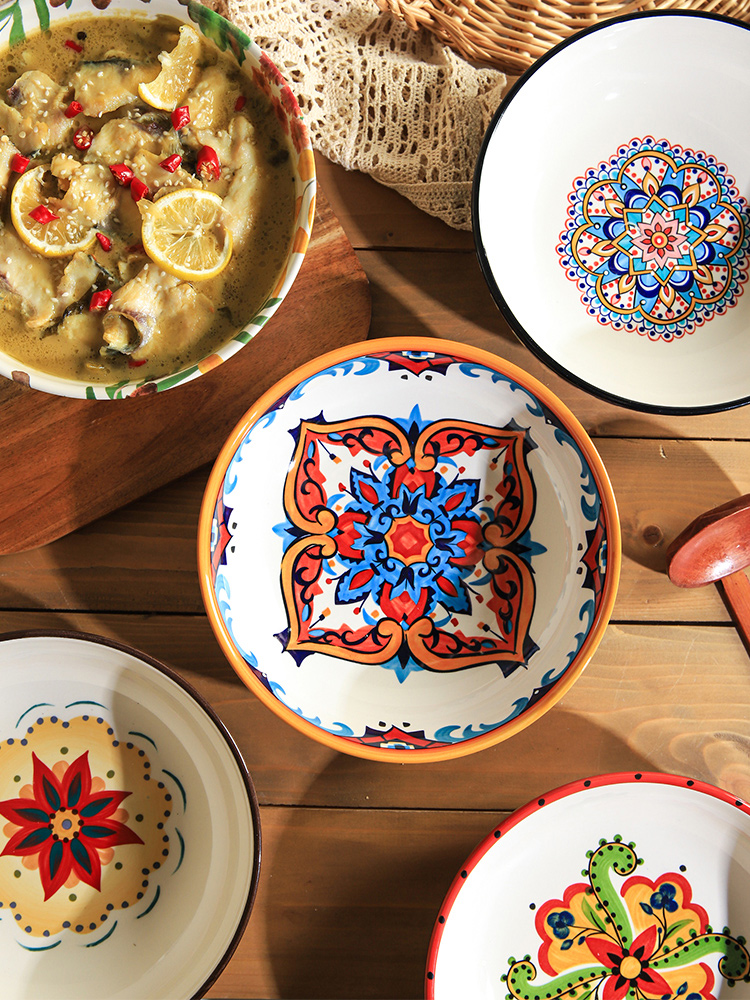 | nameOriginal | Sheri American Country Bohemian Ceramic Tableware Plate Deep Plate Shallow Soup Plate Underglaze Color Cover Rice Plate |