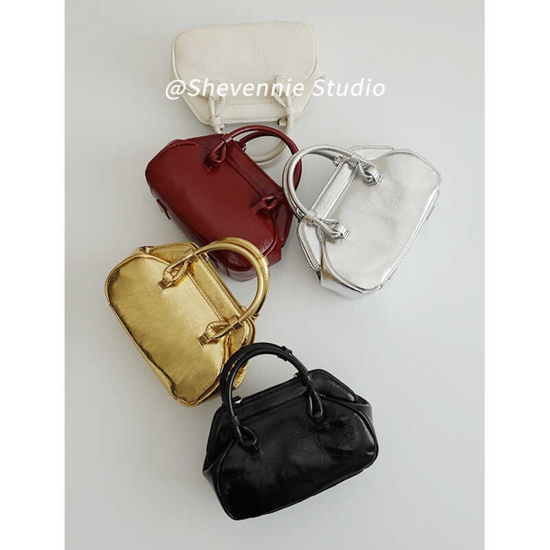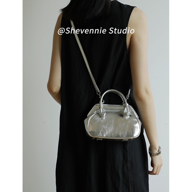 | nameOriginal | shevennie South Korea Niche Metallic Small Square Handbag Cowhide Retro All-match Shoulder Crossbody Bag for Women |