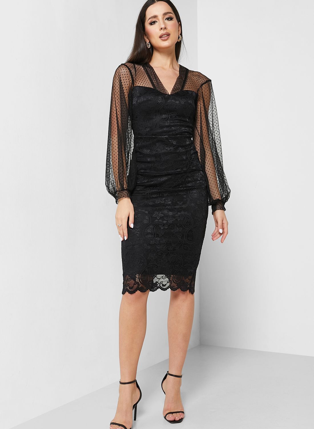 | nameOriginal | Mesh Sleeve Shift Dress |